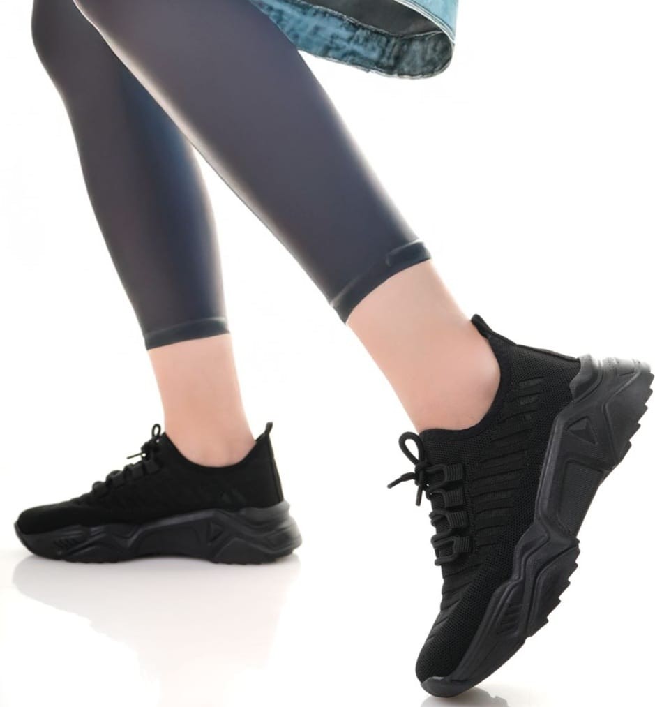 • Ante Siyah Triko Bağcıklı Spor Ayakkabı