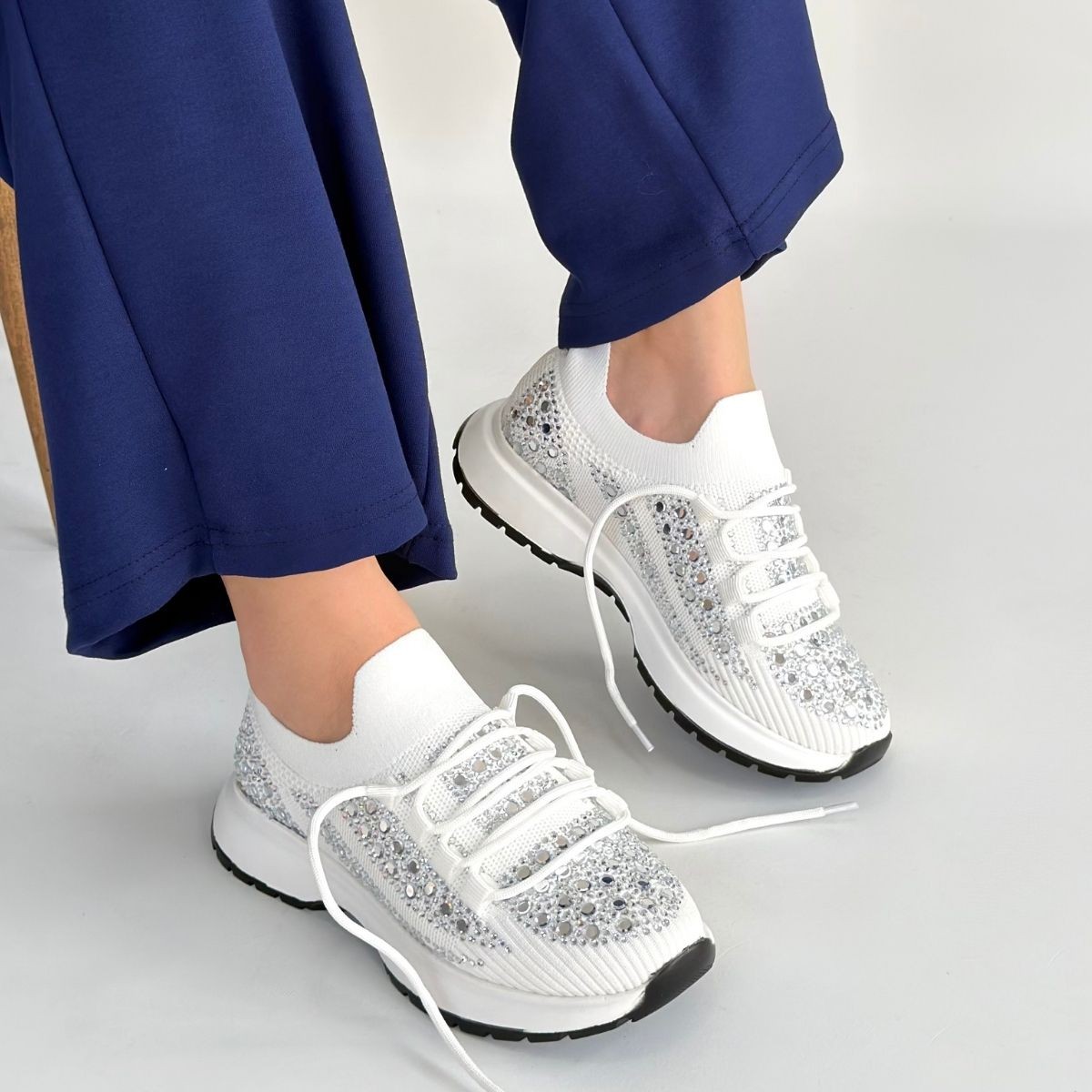 • Ceas Beyaz Triko Bağcıklı Spor Ayakkabı