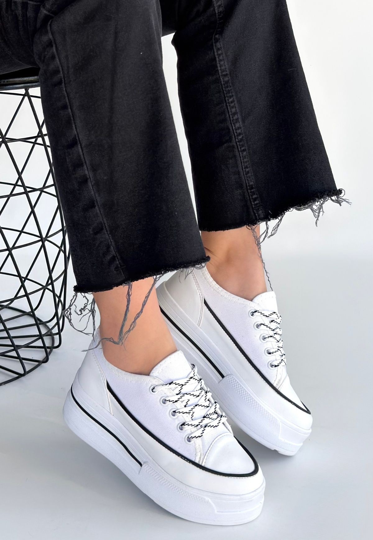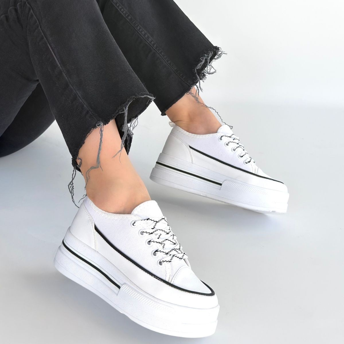• Dalen Beyaz Keten Bağcıklı Spor Ayakkabı