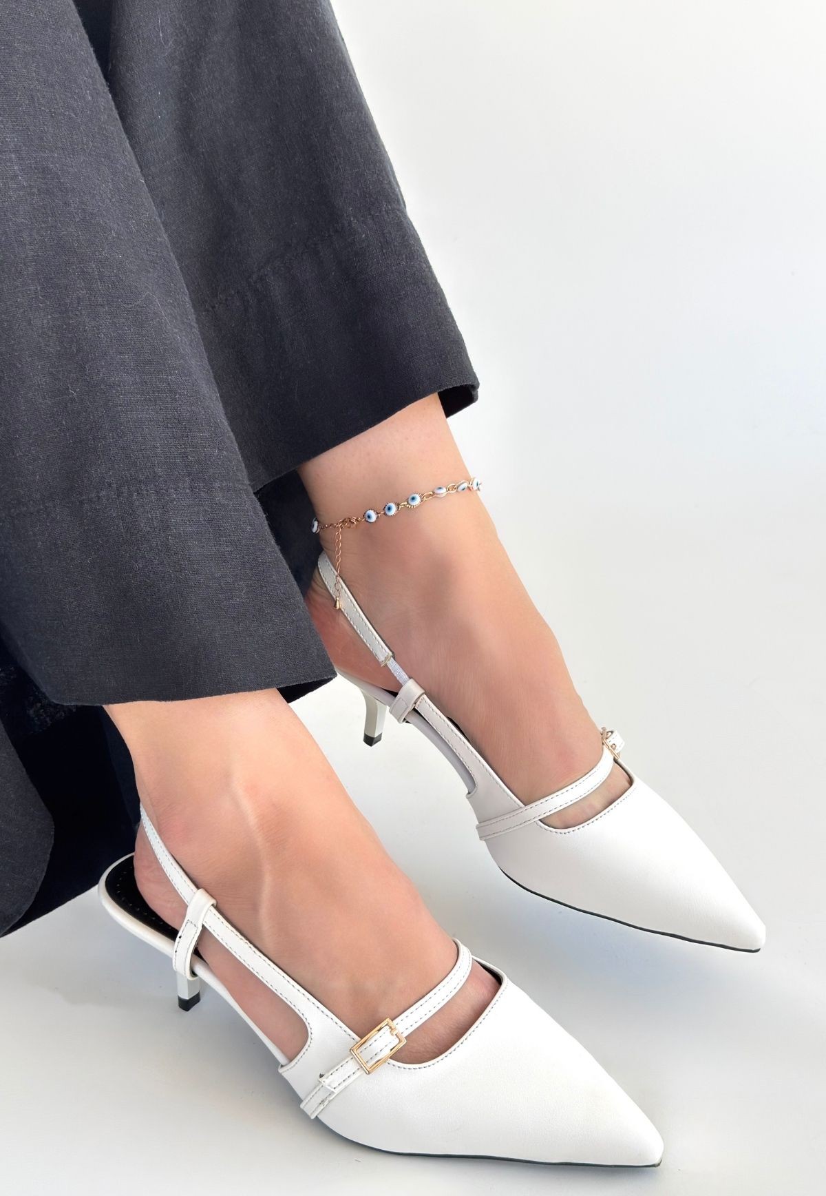 • Darina Beyaz Cilt Topuklu Ayakkabı