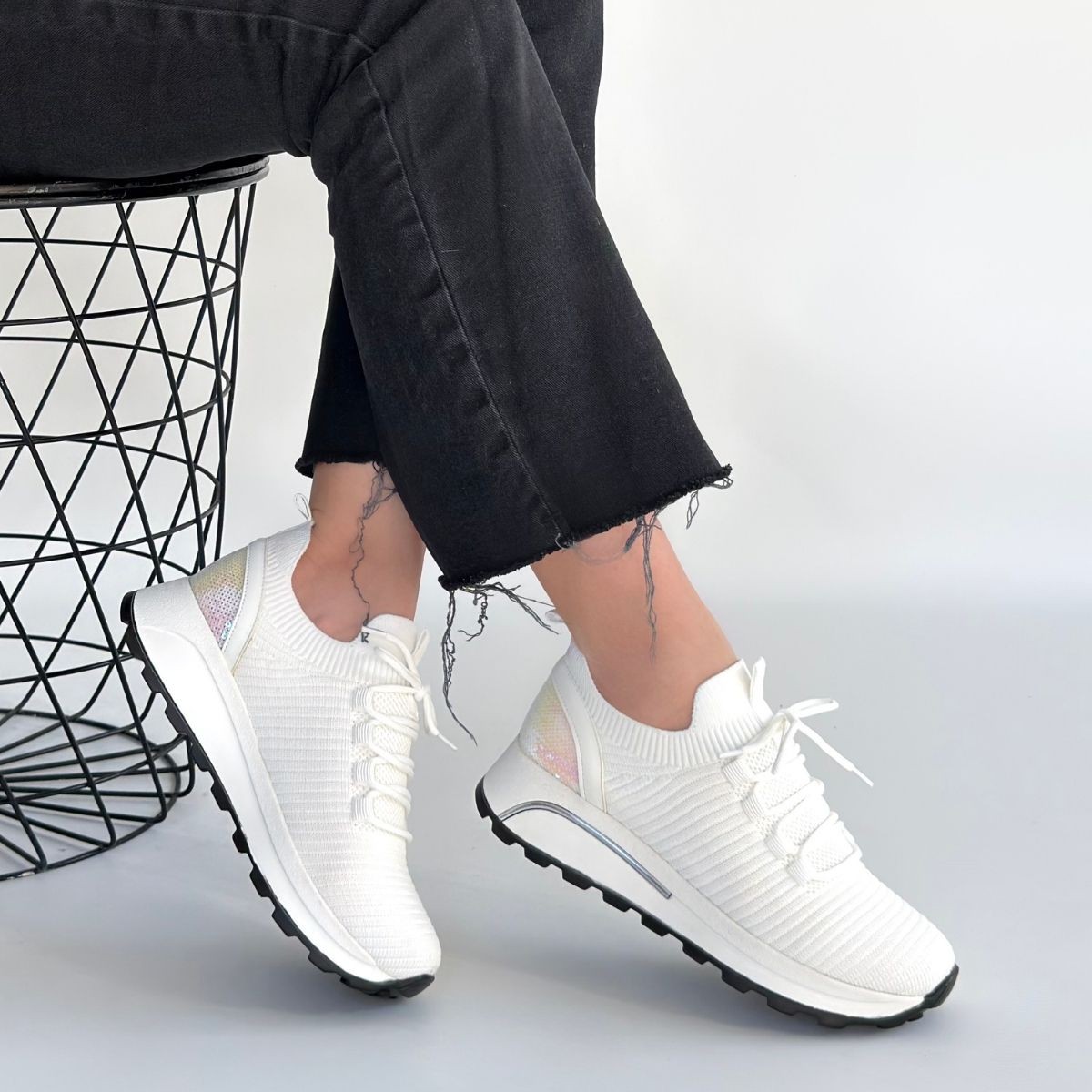 • Feort Beyaz Triko Bağcıklı Spor Ayakkabı