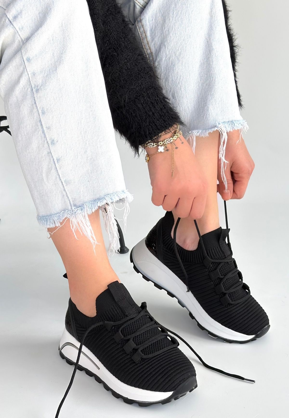 • Feort Siyah Triko Bağcıklı Spor Ayakkabı