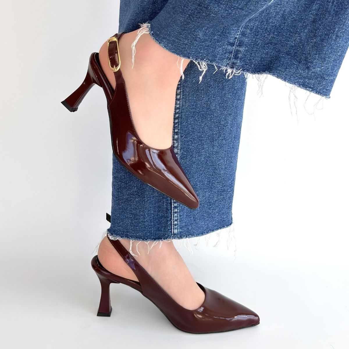 • Hies Bordo Rugan Topuklu Ayakkabı