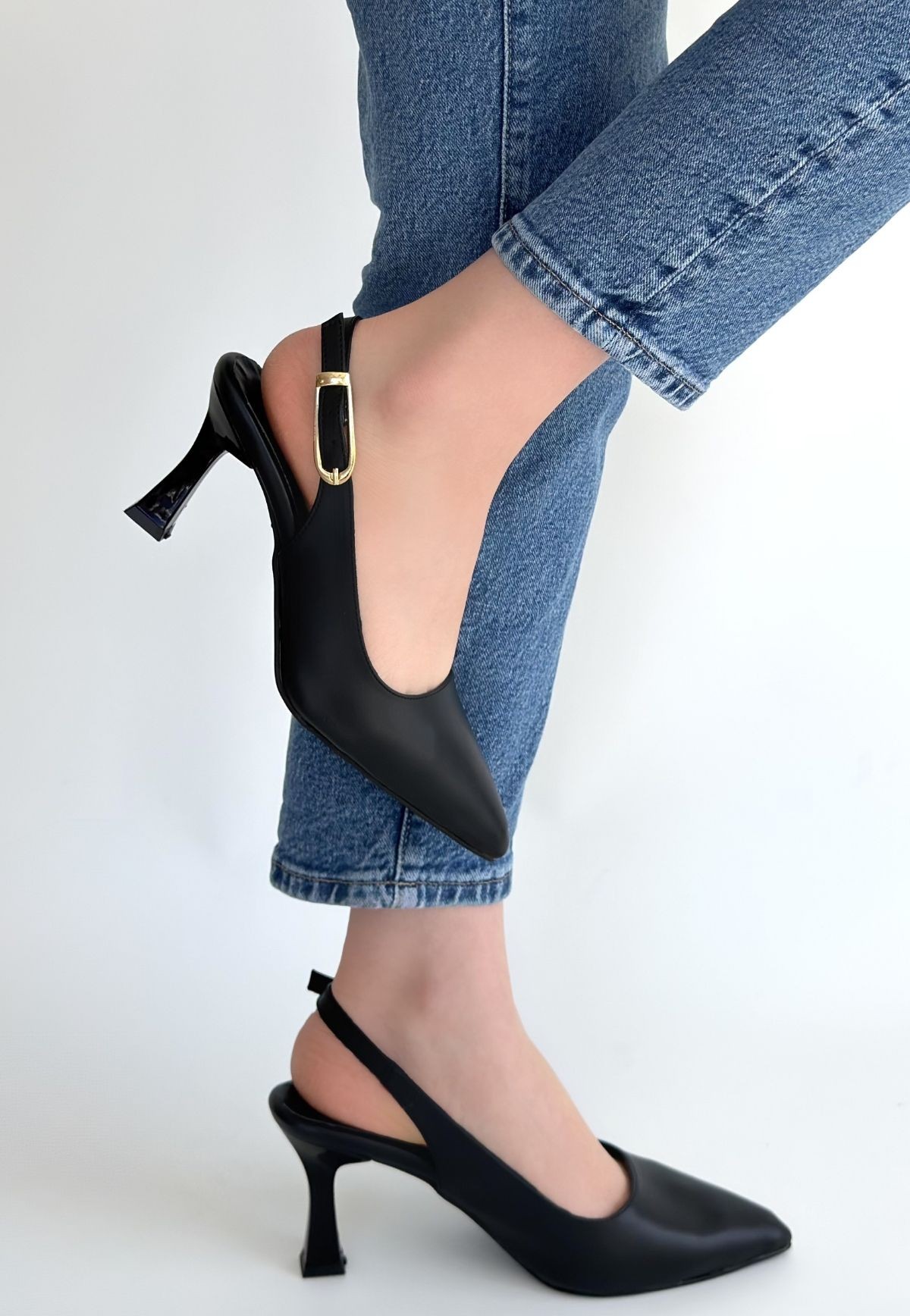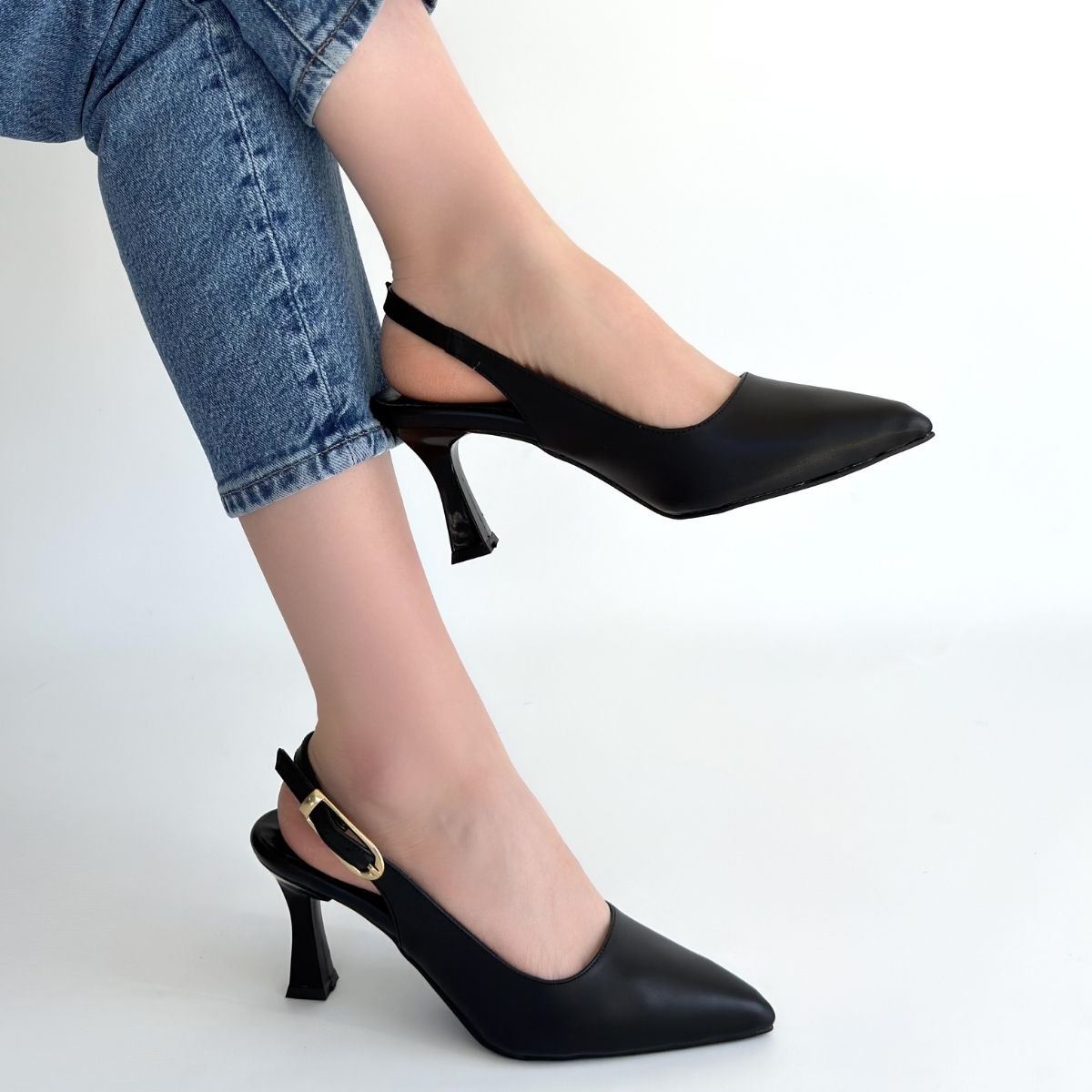 • Hies Siyah Cilt Topuklu Ayakkabı