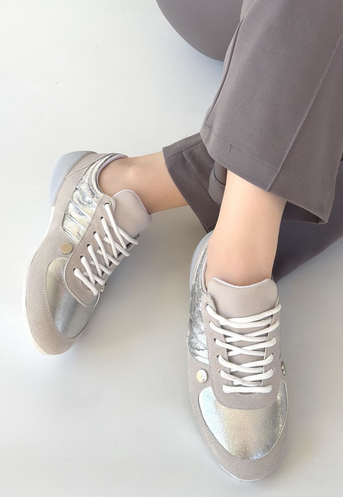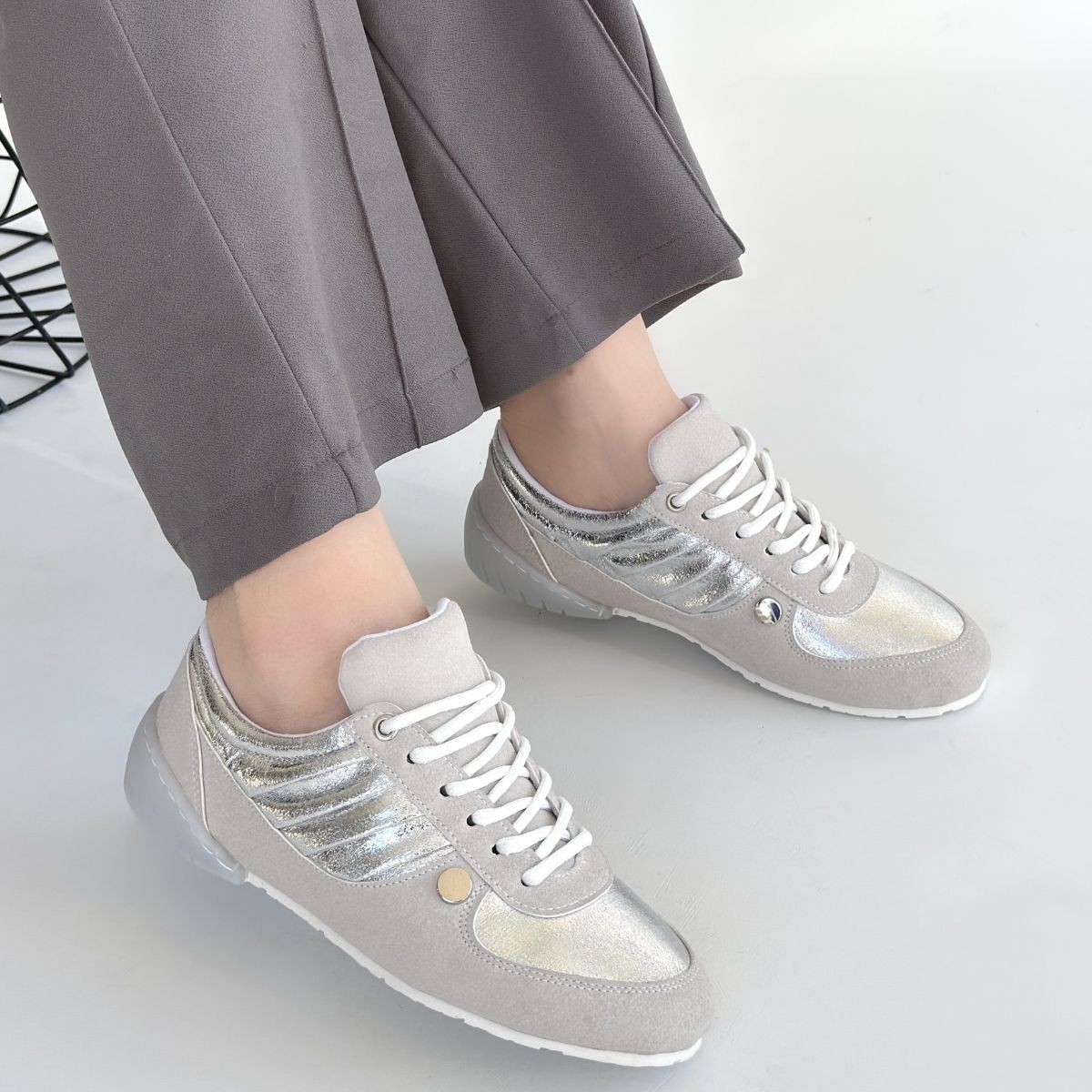 • Jawen Gri Nubuk Gümüş Detaylı Spor Ayakkabı