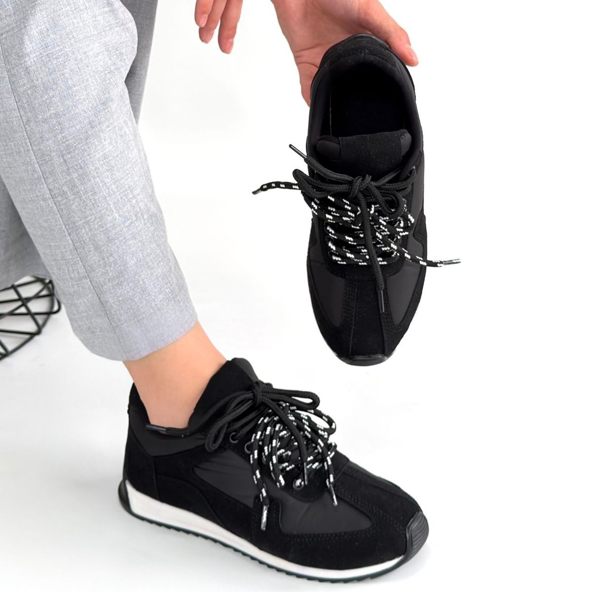 • Jeat Siyah Nubuk Bağcıklı Spor Ayakkabı