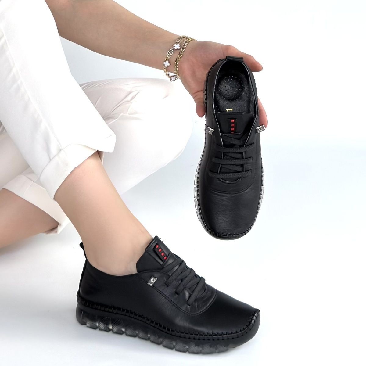 • Jiten Siyah Deri Bağcıklı Spor QAyakkabı