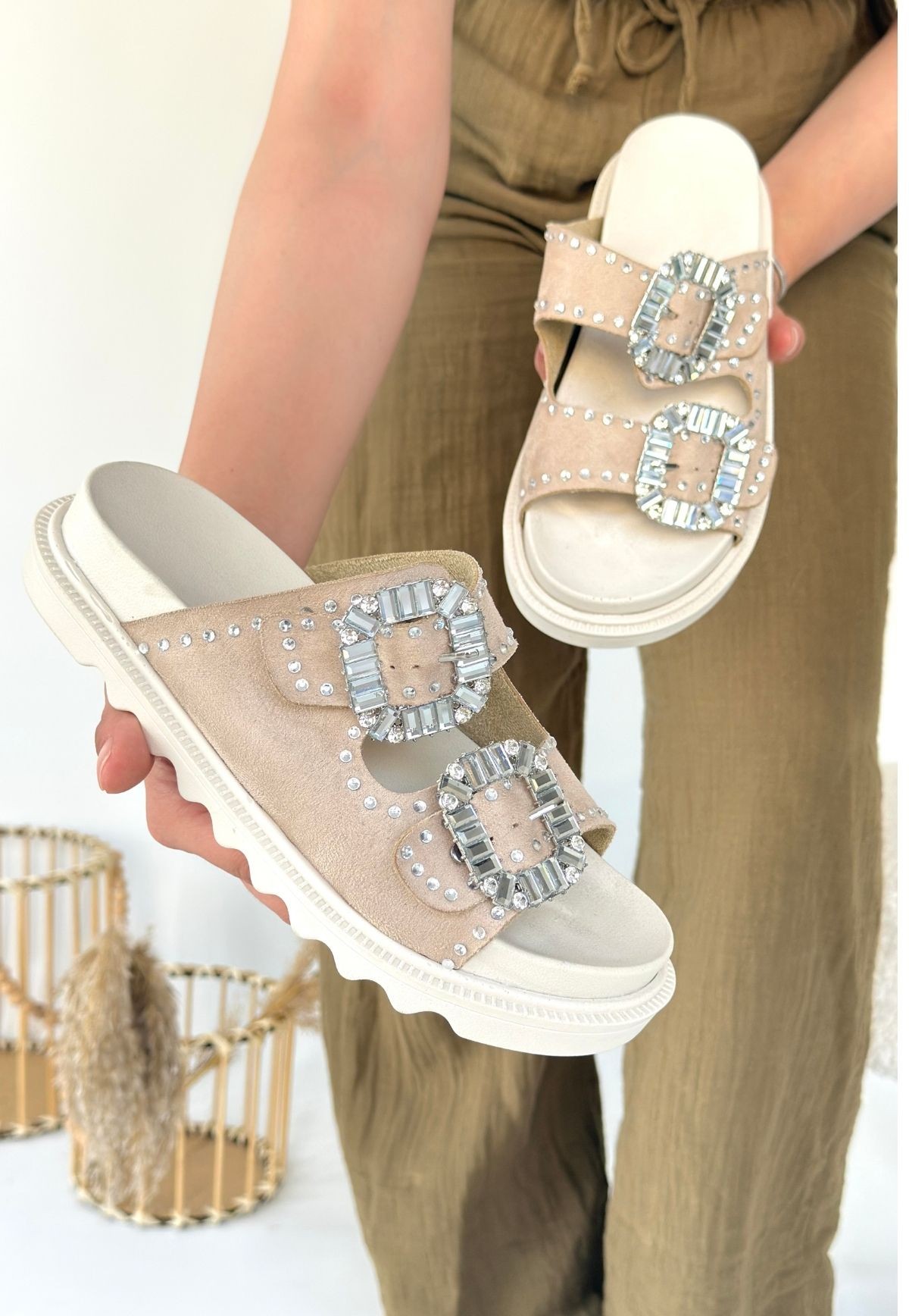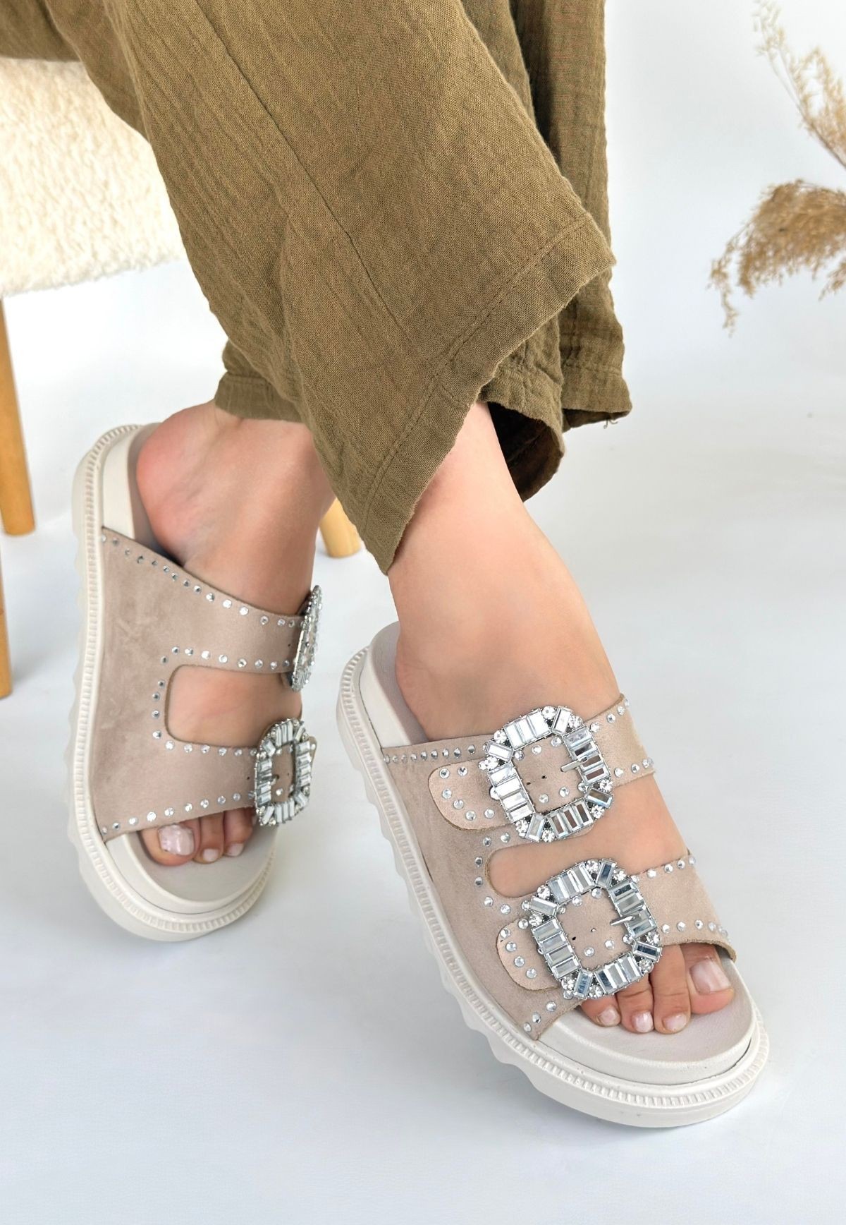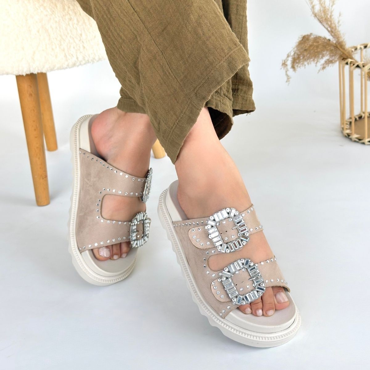 • Juana Bej Nubuk Taşlı Terlik