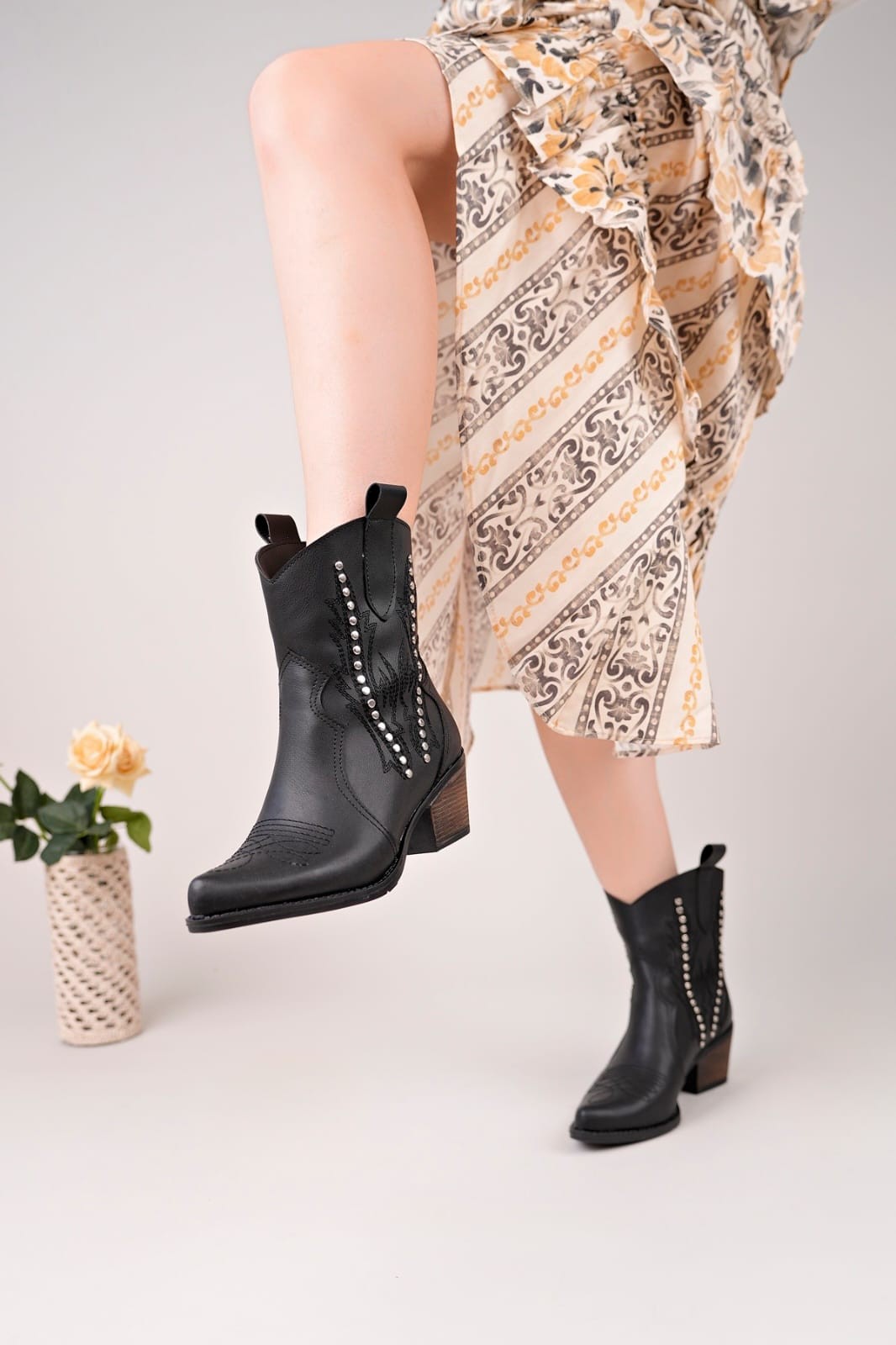 Kadın Bot Matin Siyah Cilt Topuklu Bot