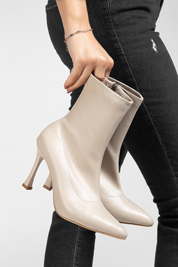 Kadın Bot Orjen Bej Cilt Streç Topuklu Bot