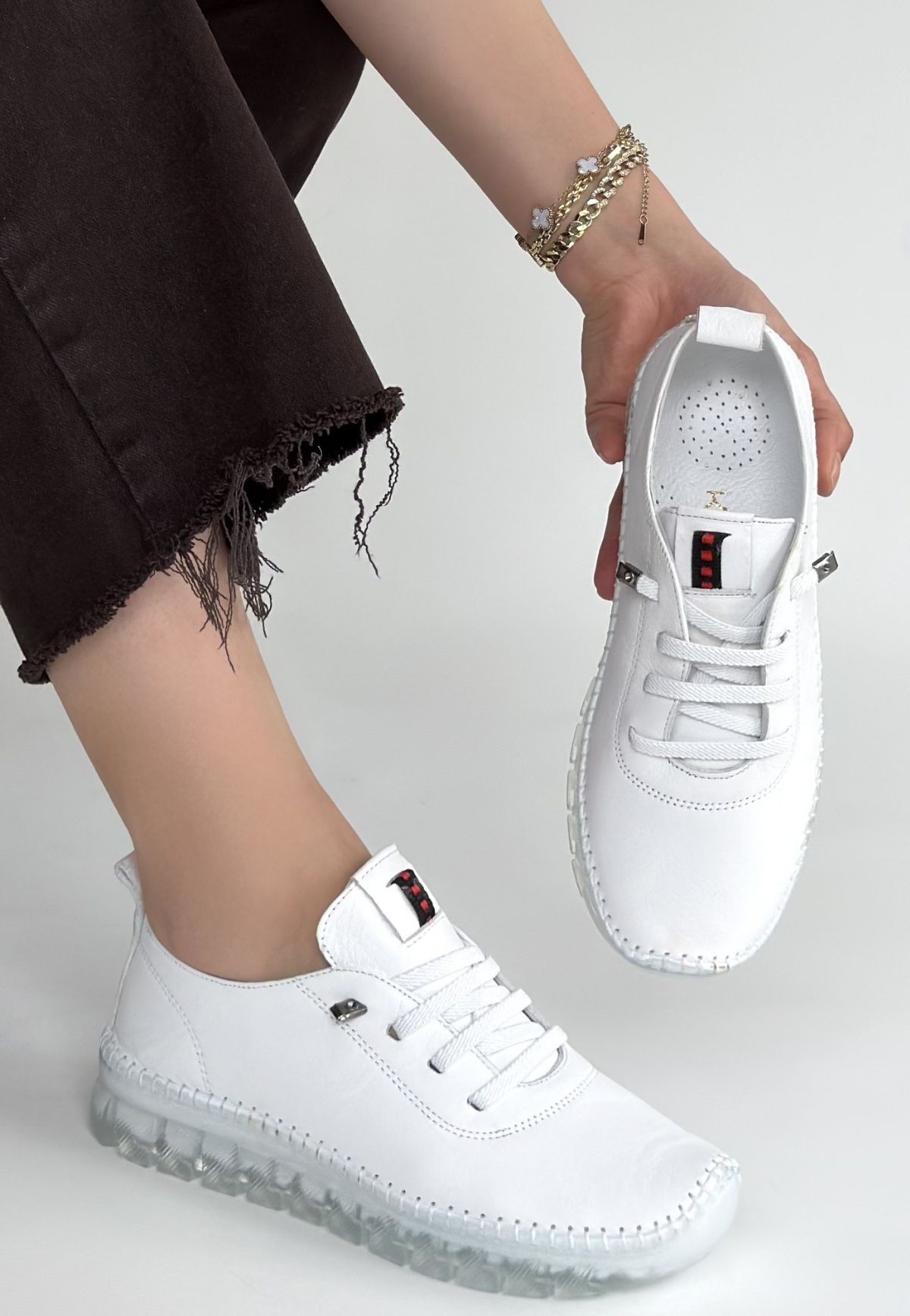 Kadın Spor Jiten Beyaz Deri Bağcıklı Spor Ayakkabı