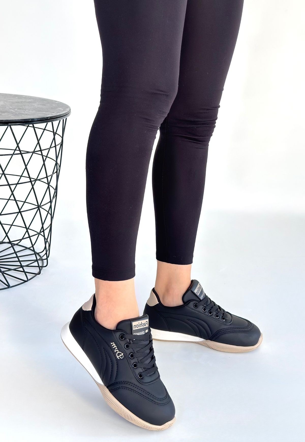 Kadın Spor Tawen Siyah Cilt Bej Tabanlı Bağcıklı Spor Ayakkabı