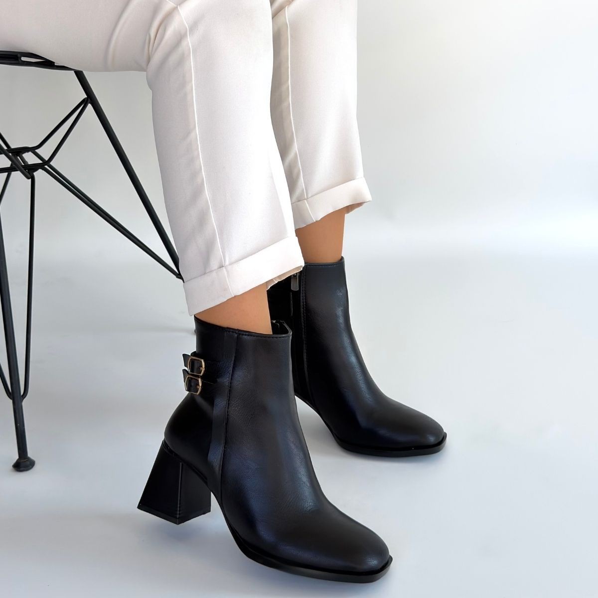 Kanda Siyah Cilt Topuklu Bot