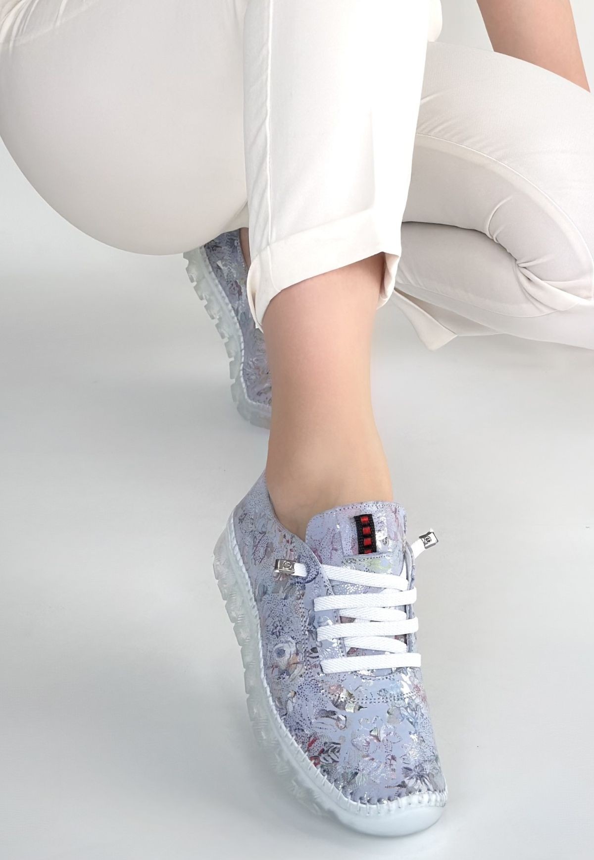 • Jiten Lila Desenli Deri Bağcıklı Spor Ayakkabı