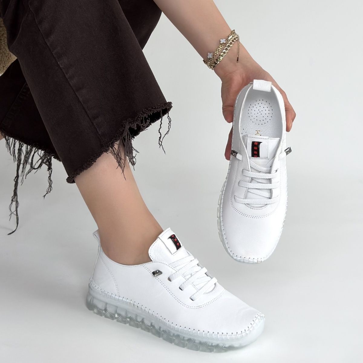 Kitta Beyaz Deri Bağcıklı Spor Ayakkabı
