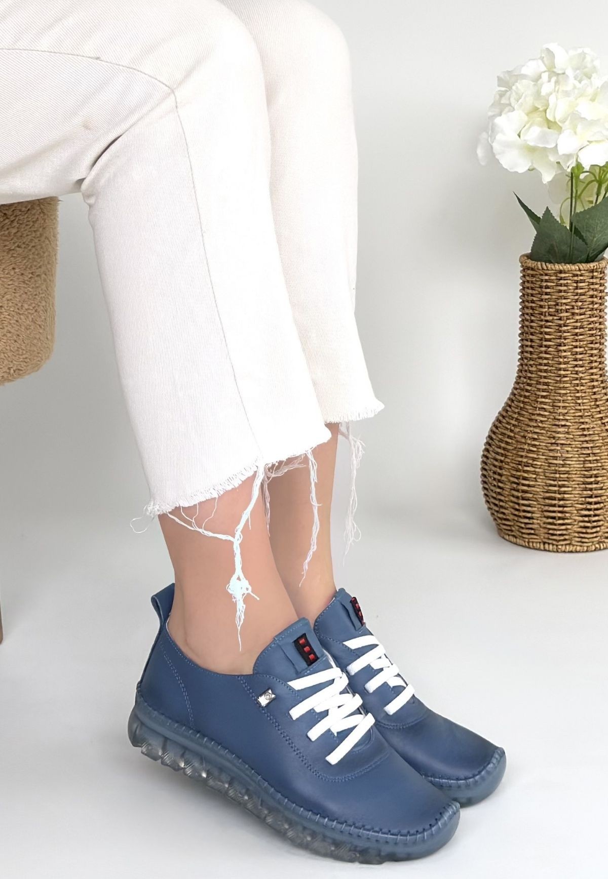 Kitta Mavi Deri Bağcıklı Spor Ayakkabı