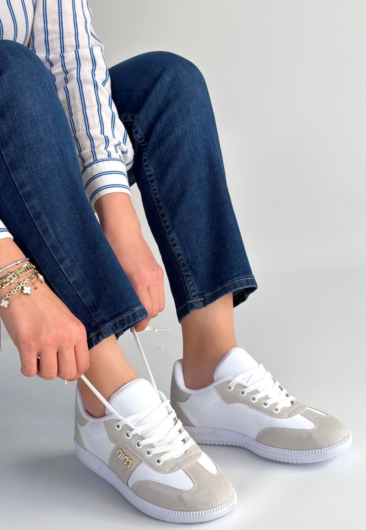 • Lunga Beyaz Cilt Bağcıklı Spor Ayakkabı