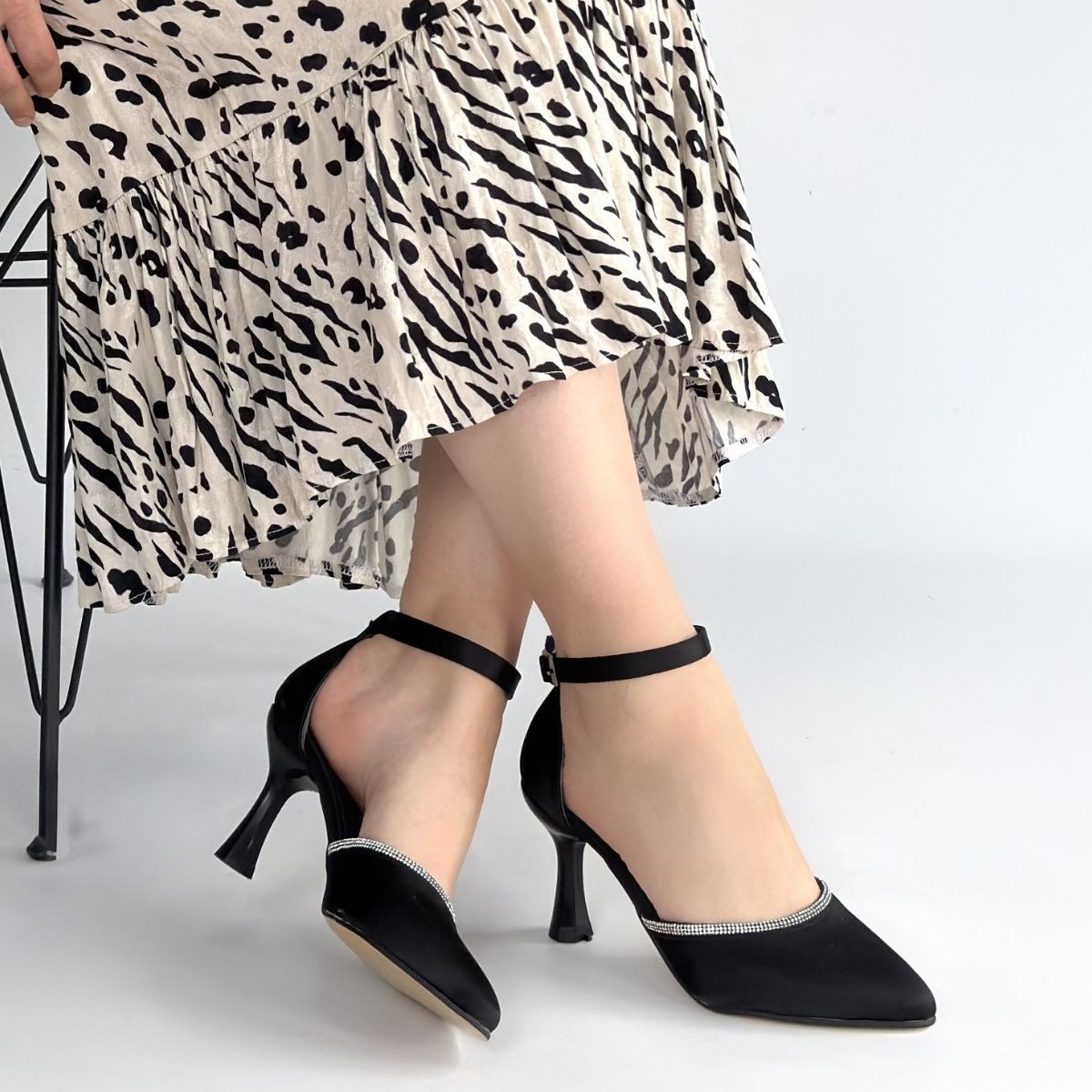 • Mejja Siyah Saten Topuklu Ayakkabı