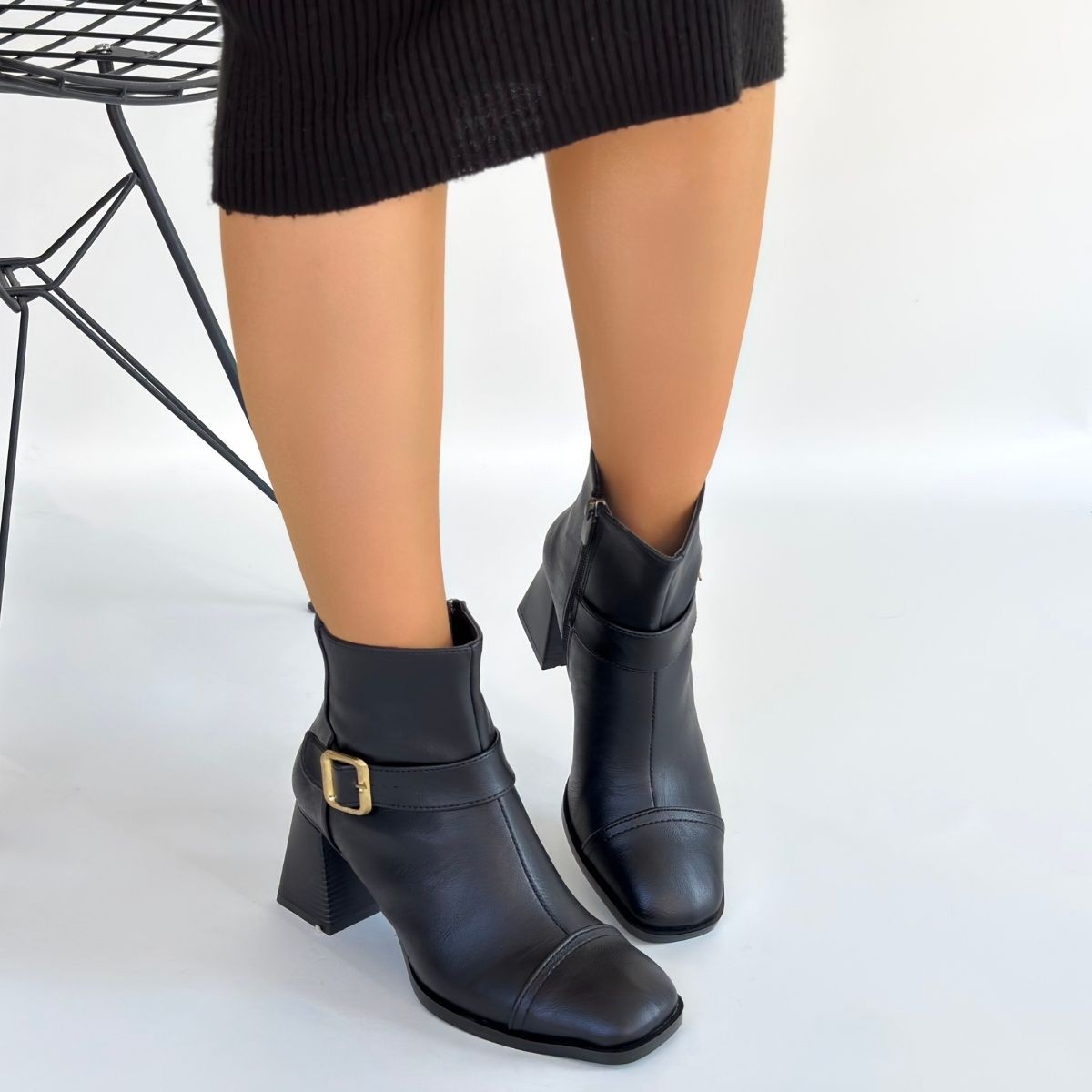 • Mejjo Siyah Cilt Topuklu Bot