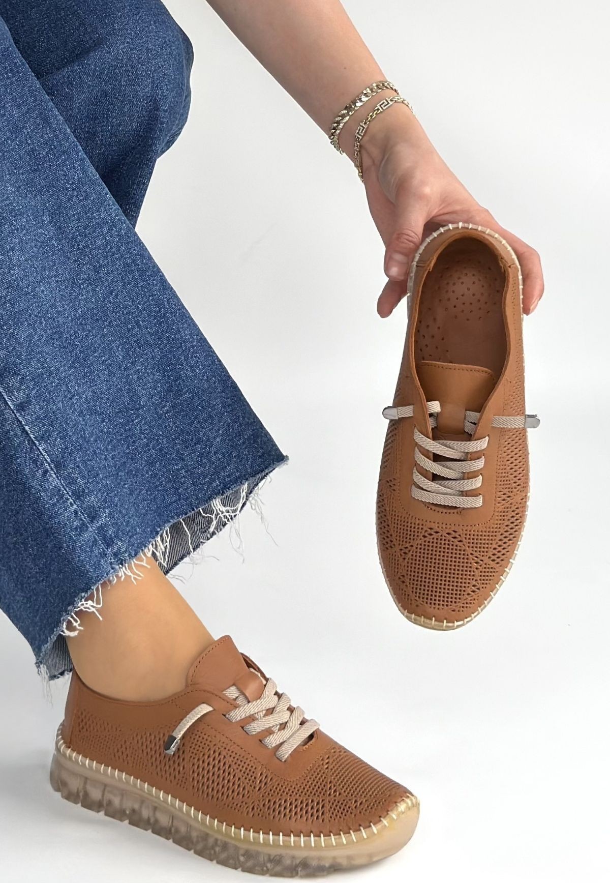 • Merja Taba Deri Bağcıklı Spor Ayakkabı