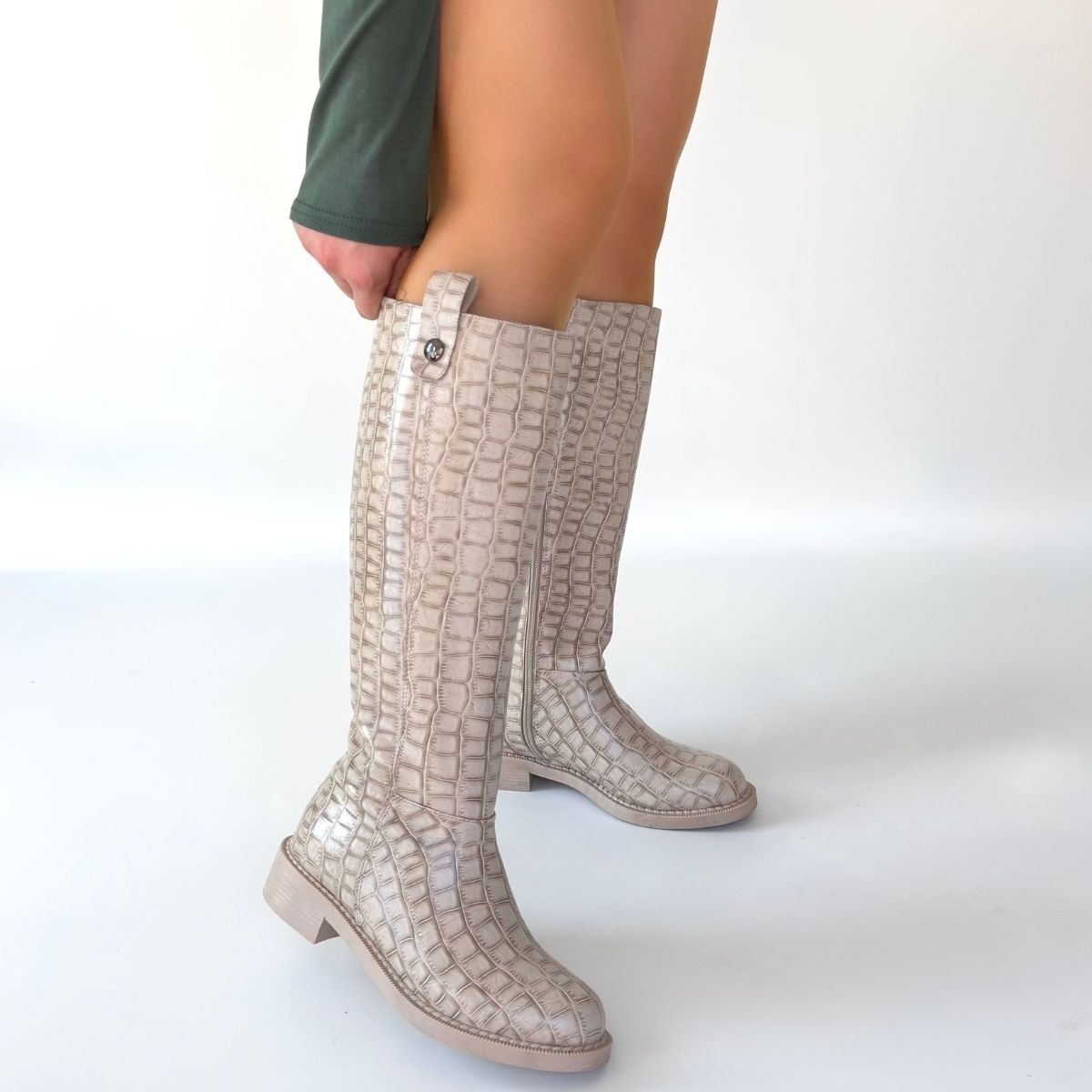 Metta Bej Cilt Desenli Çizme