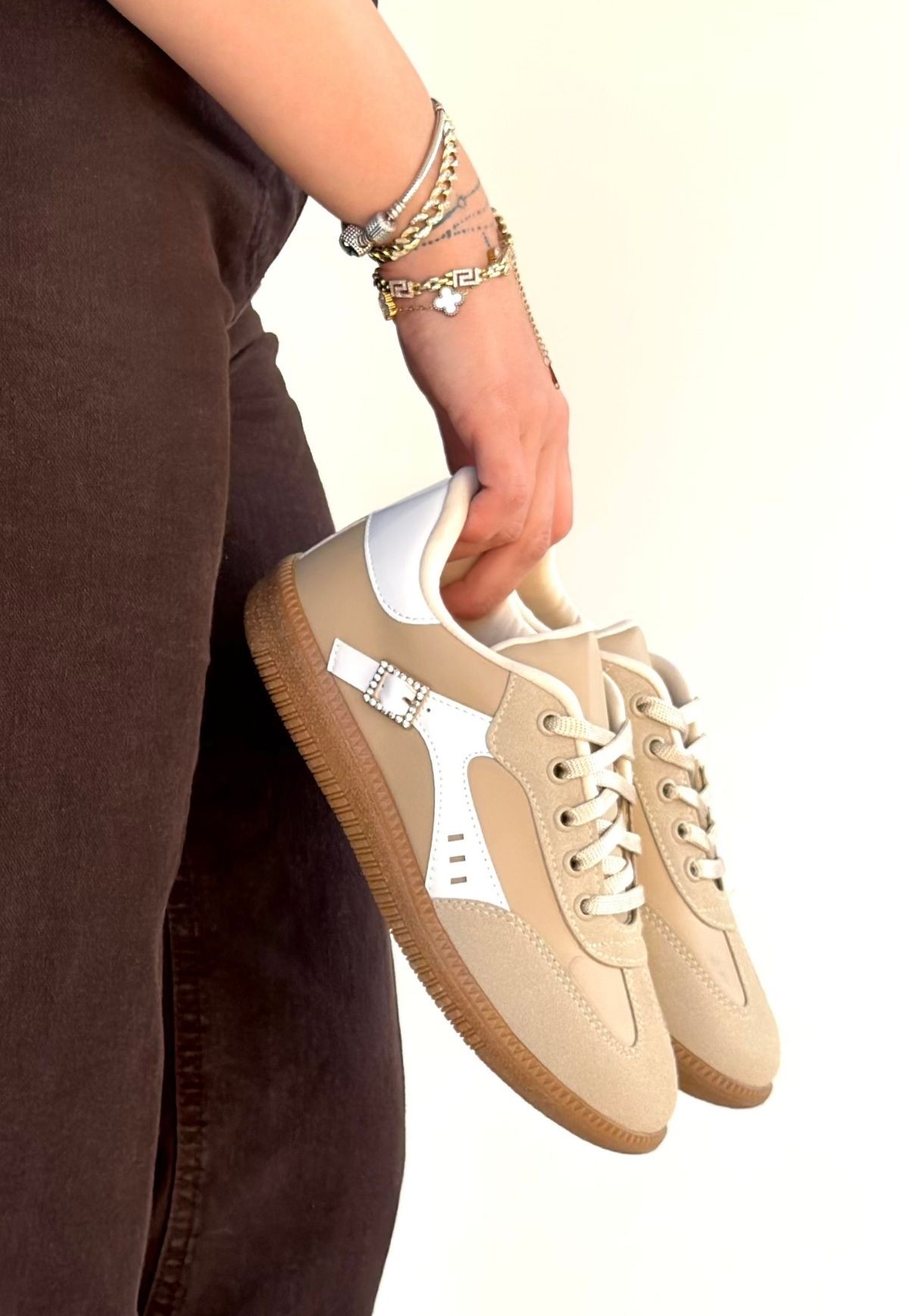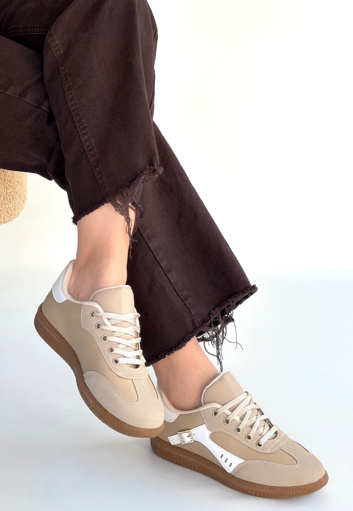 • Mier Bej Cilt Bağcıklı Spor Ayakkabı