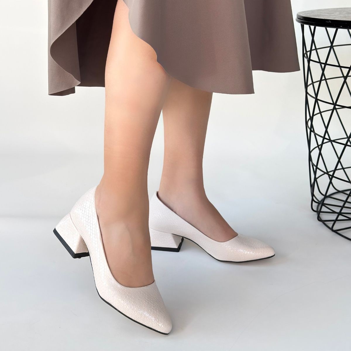 • Nitya Bej Baskılı Rugan Topuklu Ayakkabı