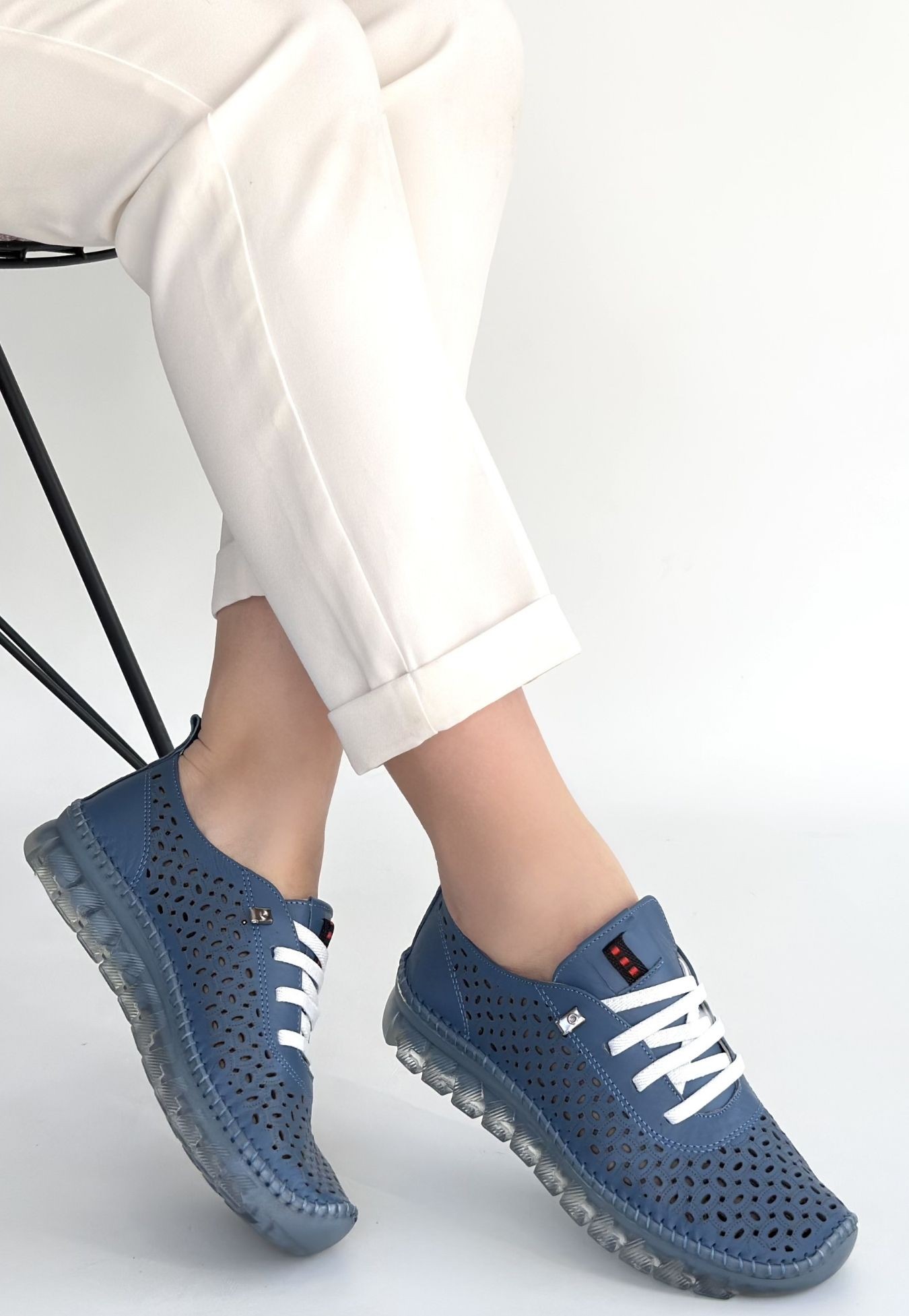 Otja Mavi Deri Lazerli Bağcıklı Spor Ayakkabı