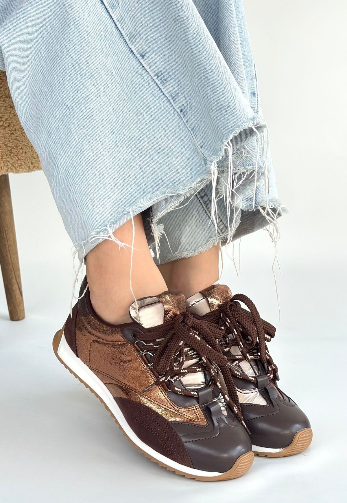 Reat Kahverengi Cilt Bağcıklı Paraşüt Detaylı Spor Ayakkabı