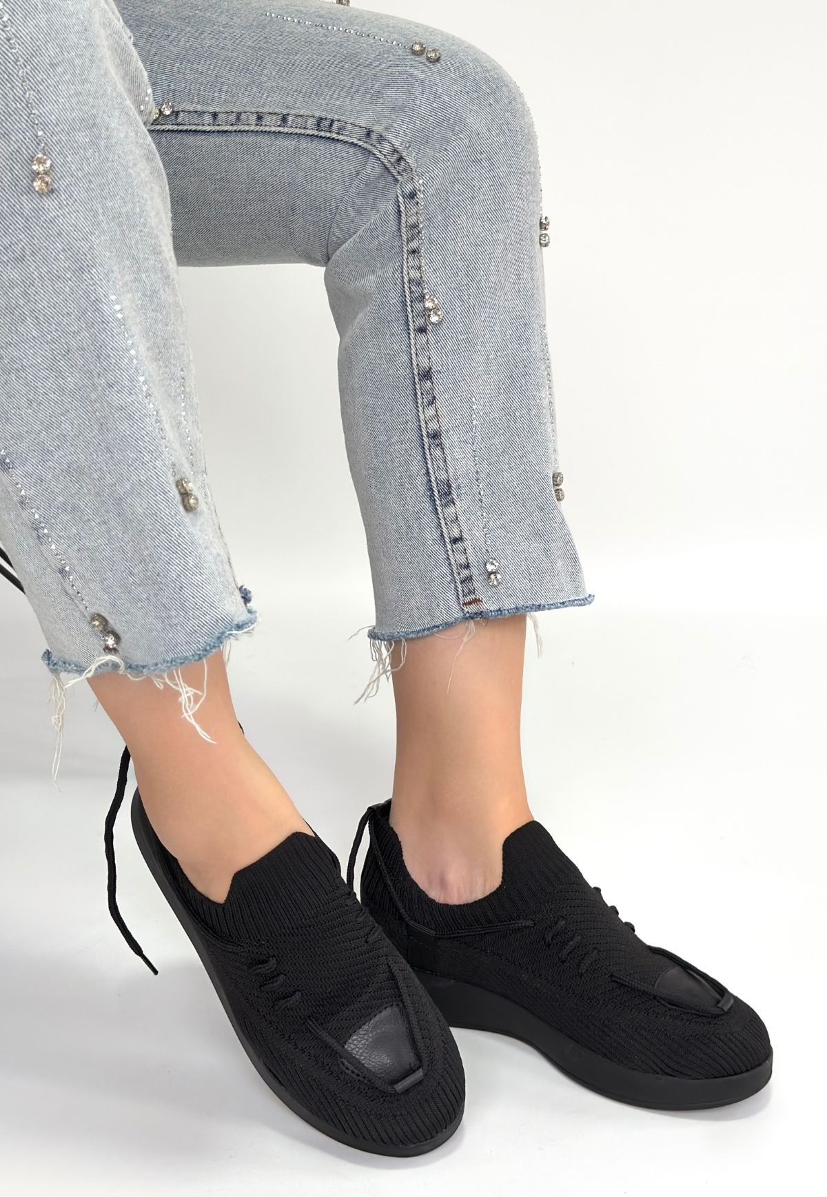 • Renji Siyah Triko Bağcıklı Spor Ayakkabı