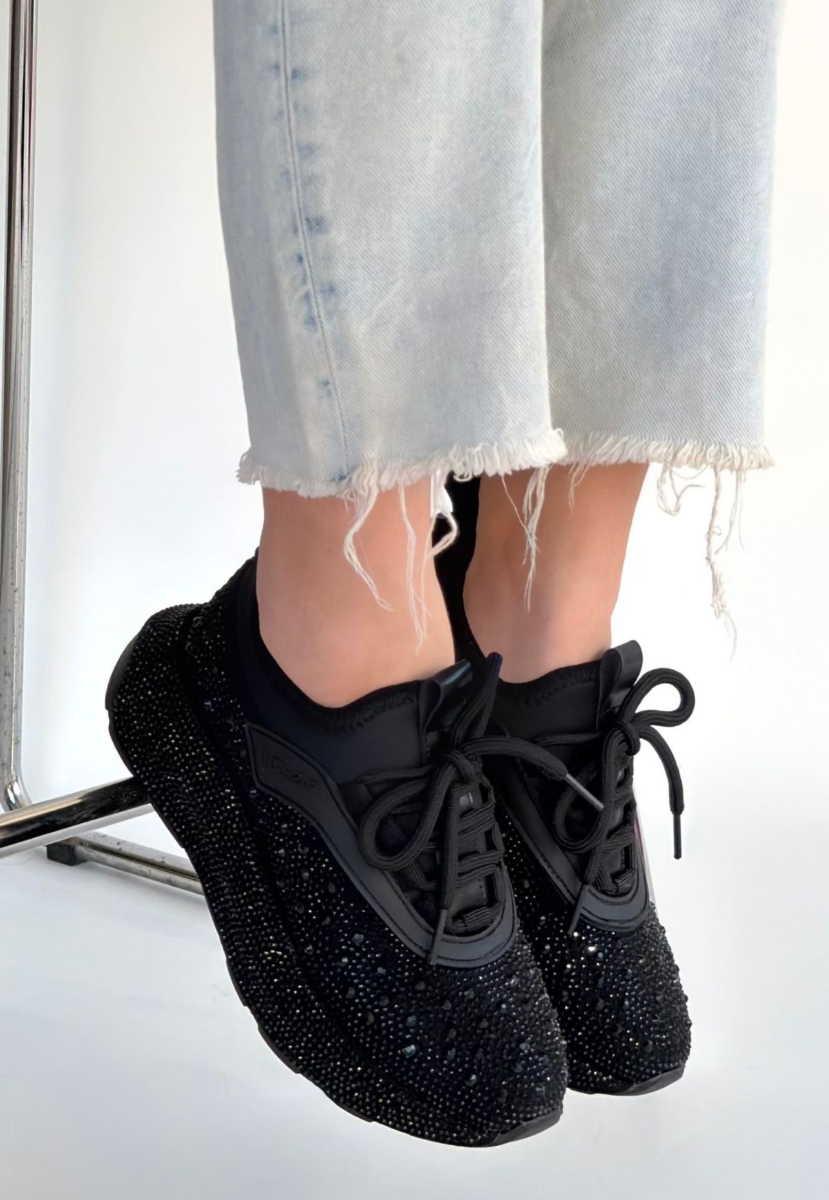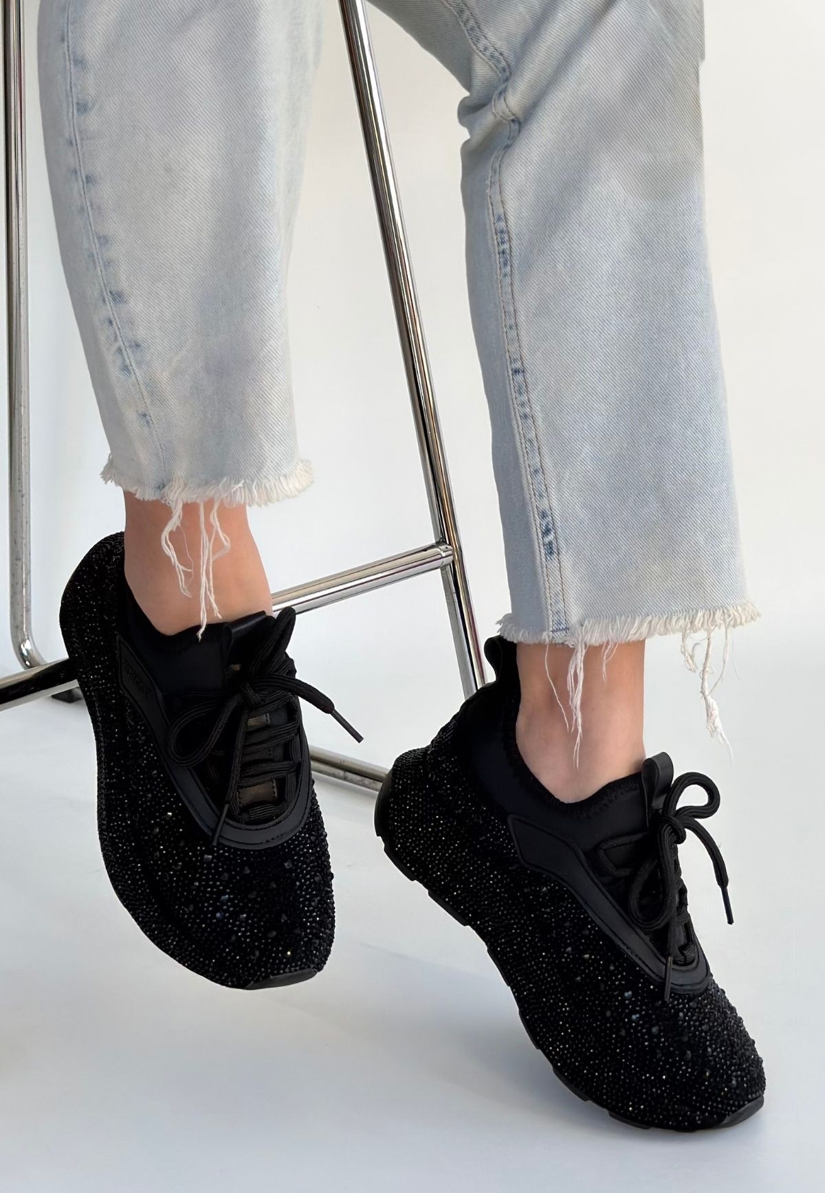 • Rimay Siyah Cilt Boncuk İşlemeli Spor Ayakkabı
