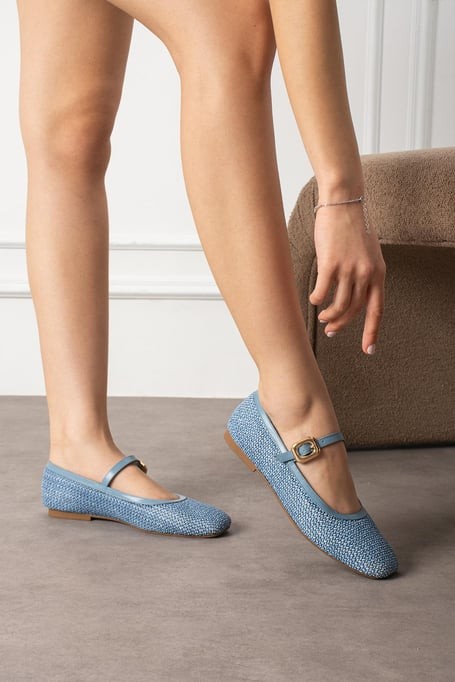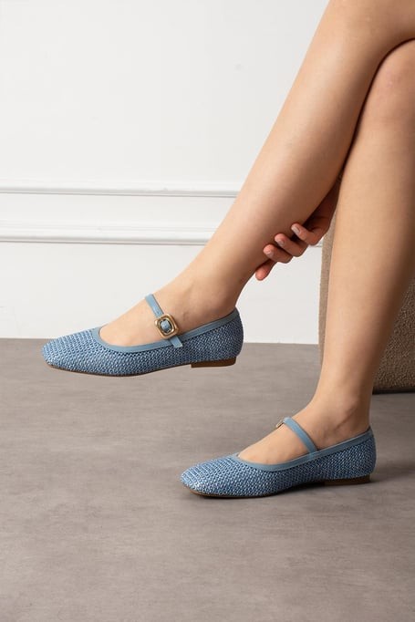 • Rives Mavi Cilt Hasır Dokumalı Babet Ayakkabı