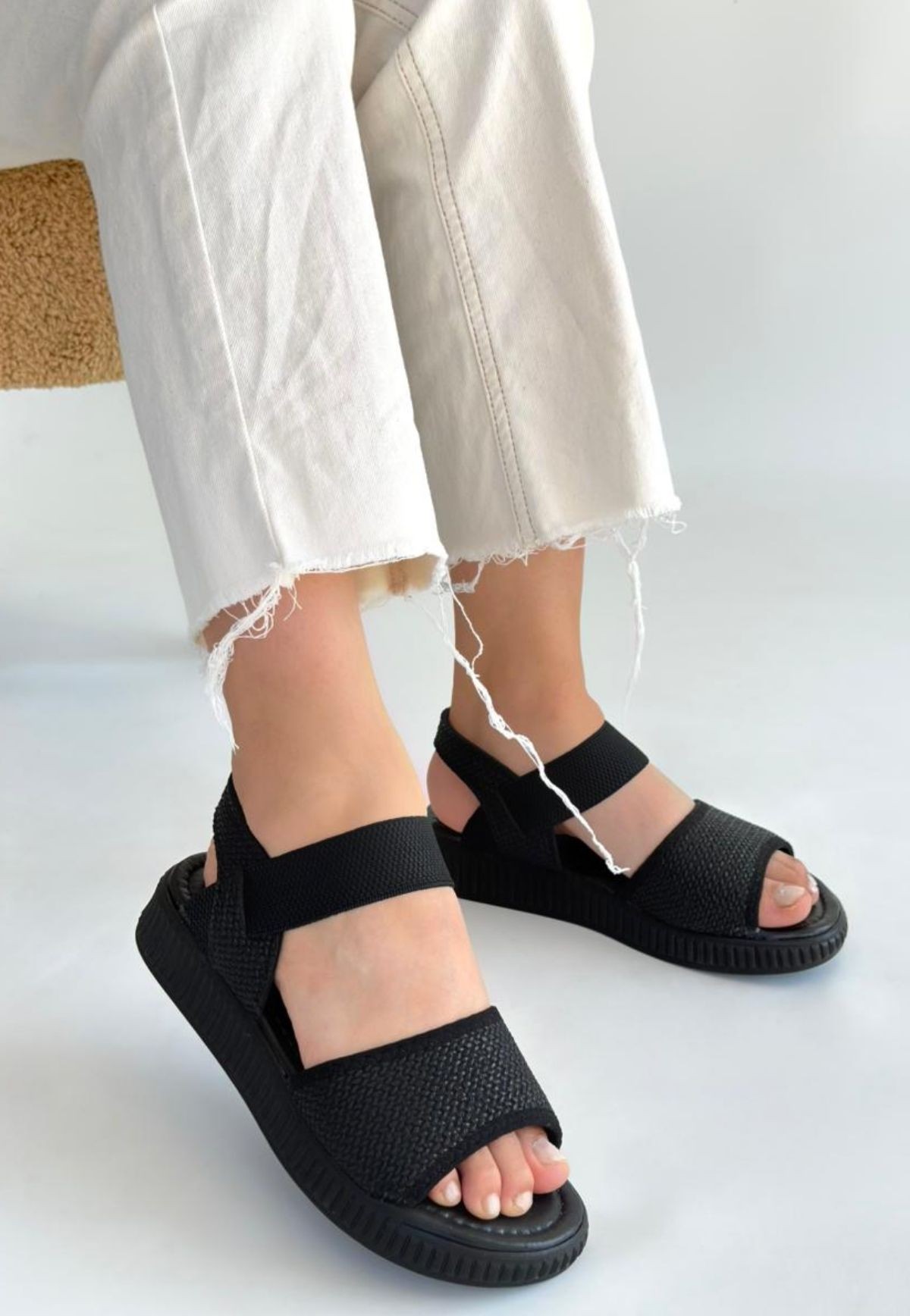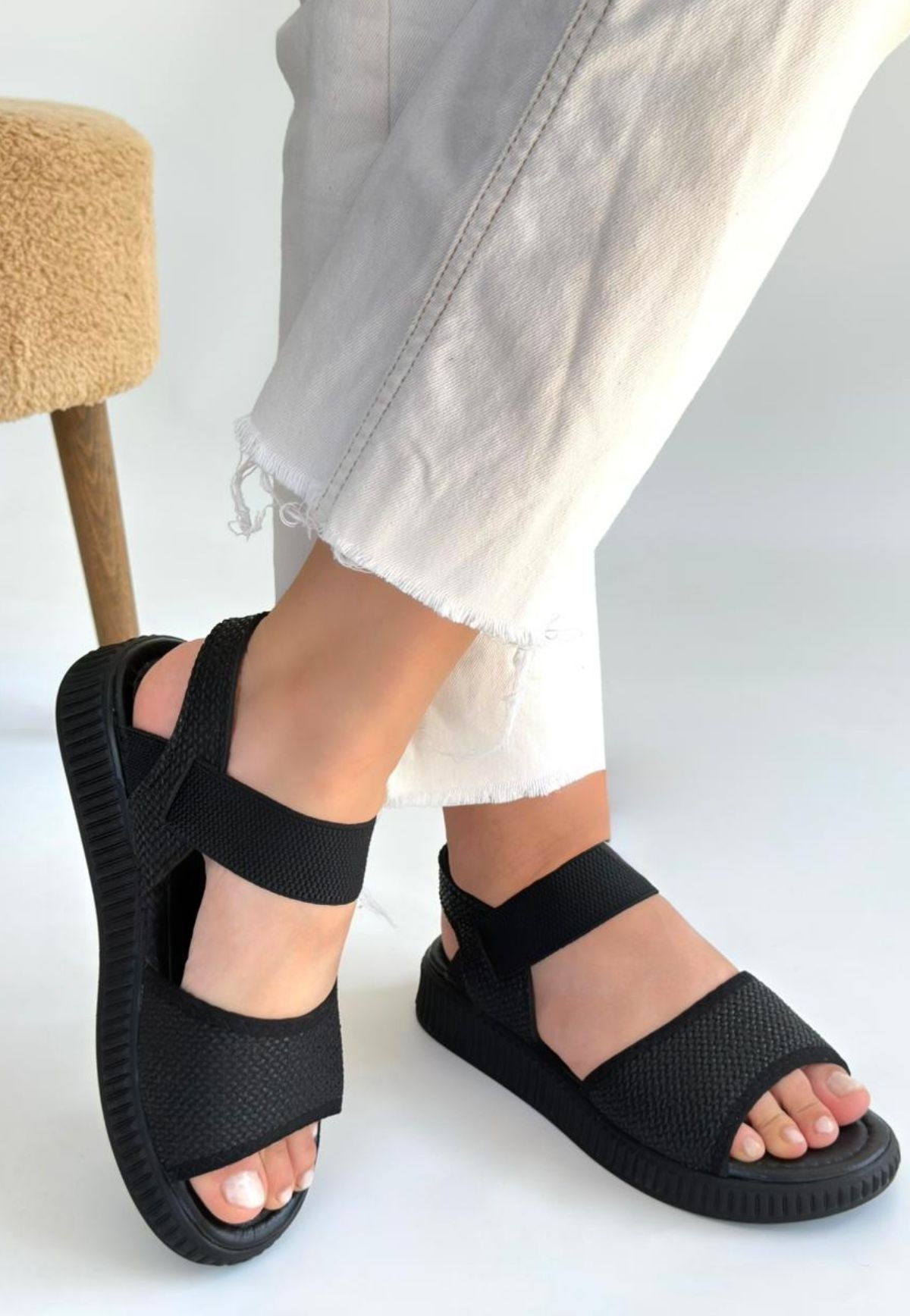 • Jake Siyah Hasır Cilt Sandalet