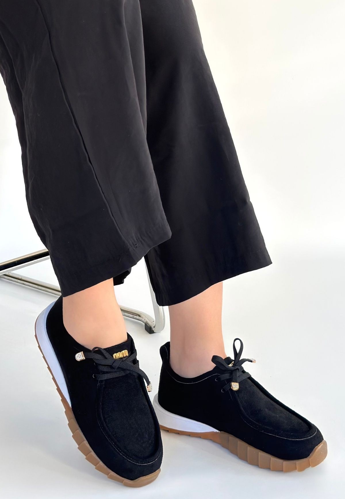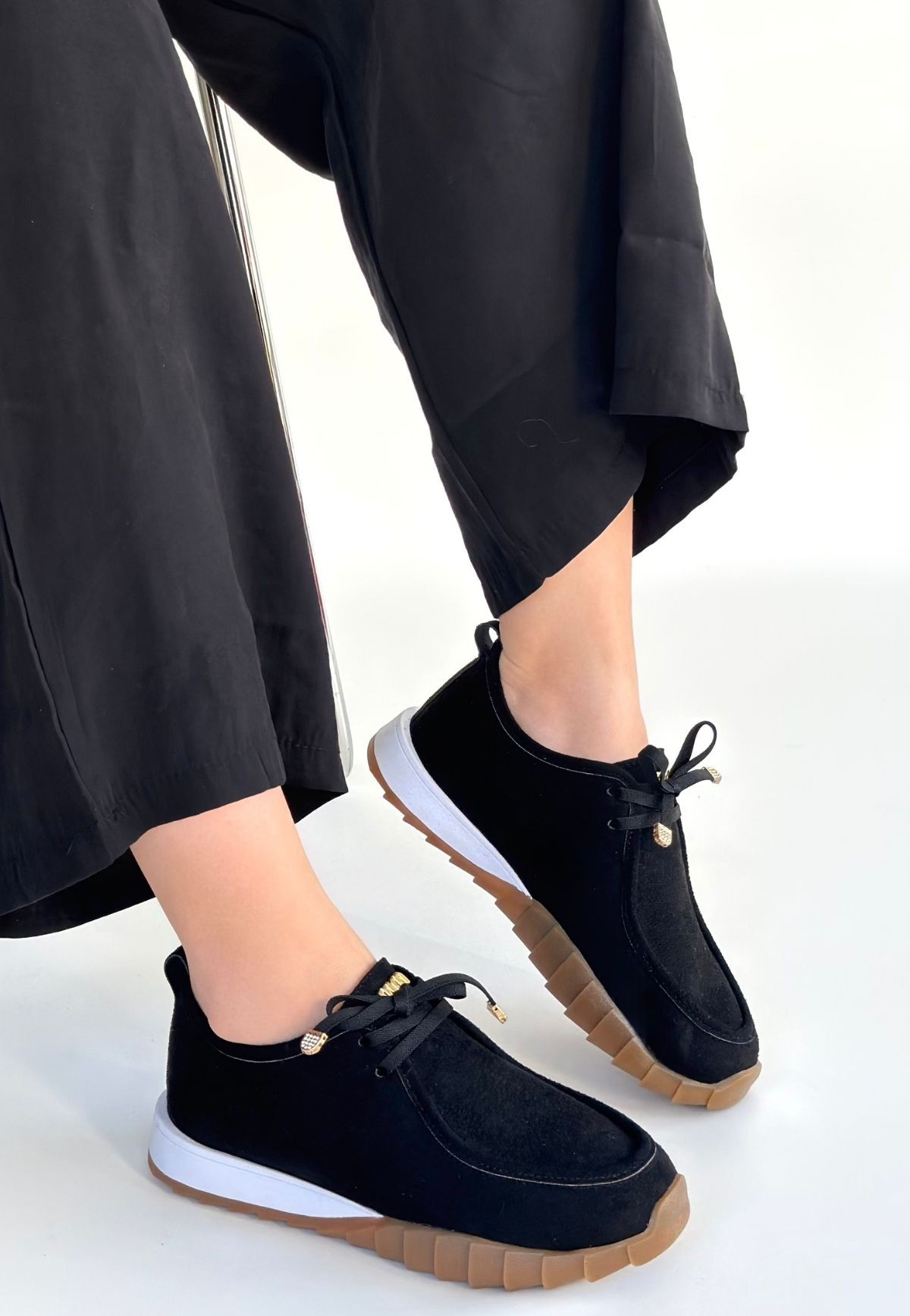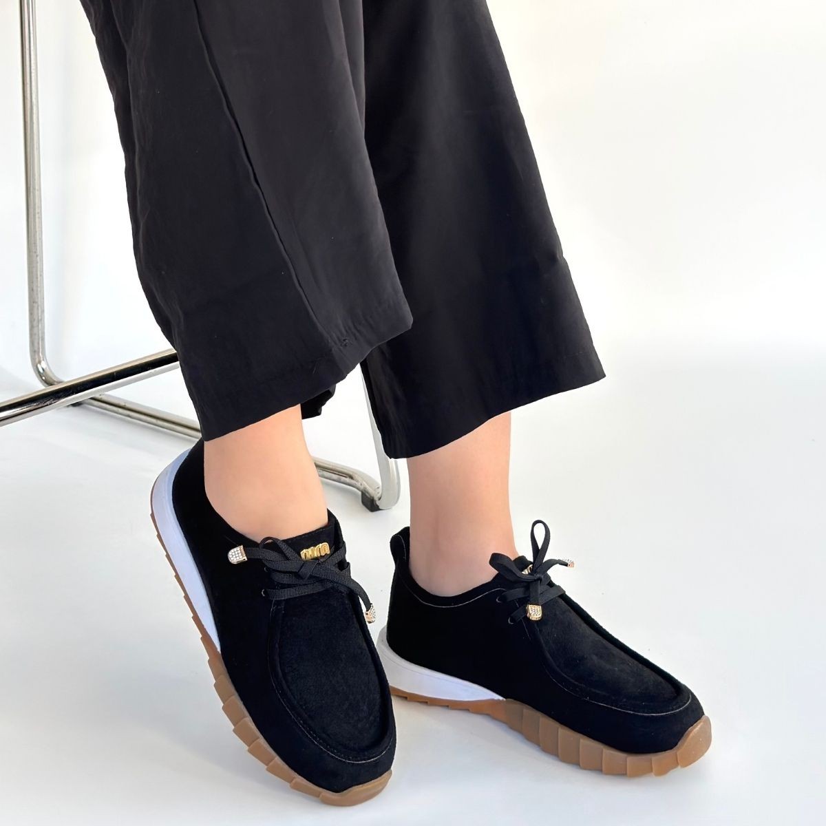 • Sier Siyah Süet Bağcıklı Spor Ayakkabı