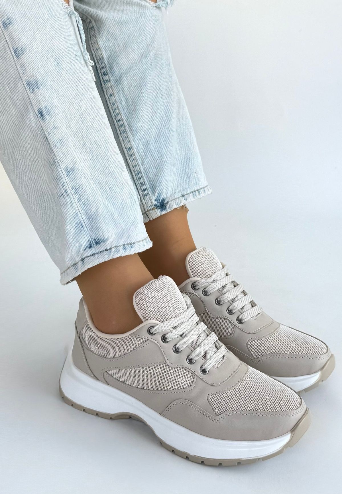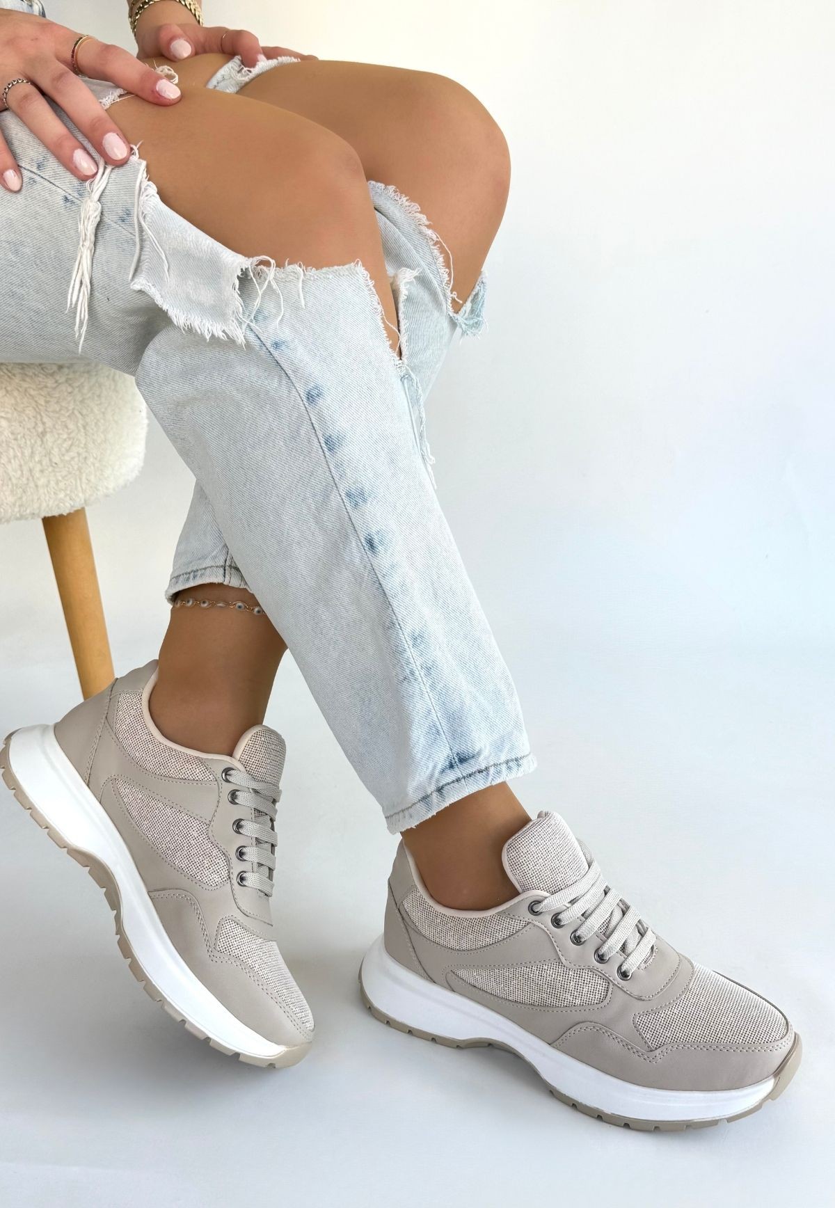 • Slar Bej Cilt Bağcıklı Spor Ayakkabı