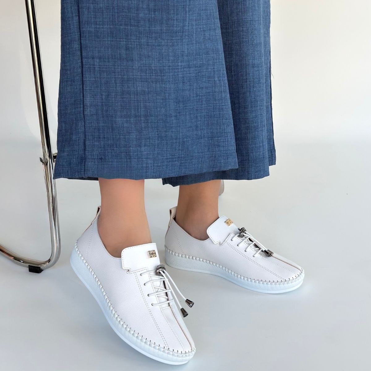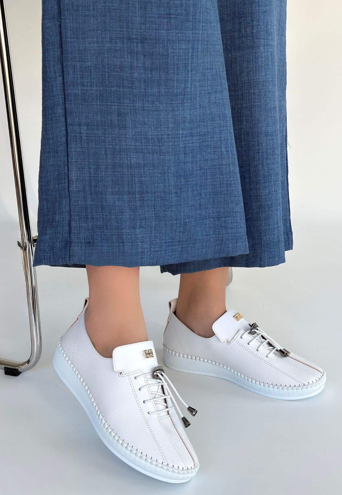 Warte Beyaz Deri Bağcıklı Spor Ayakkabı