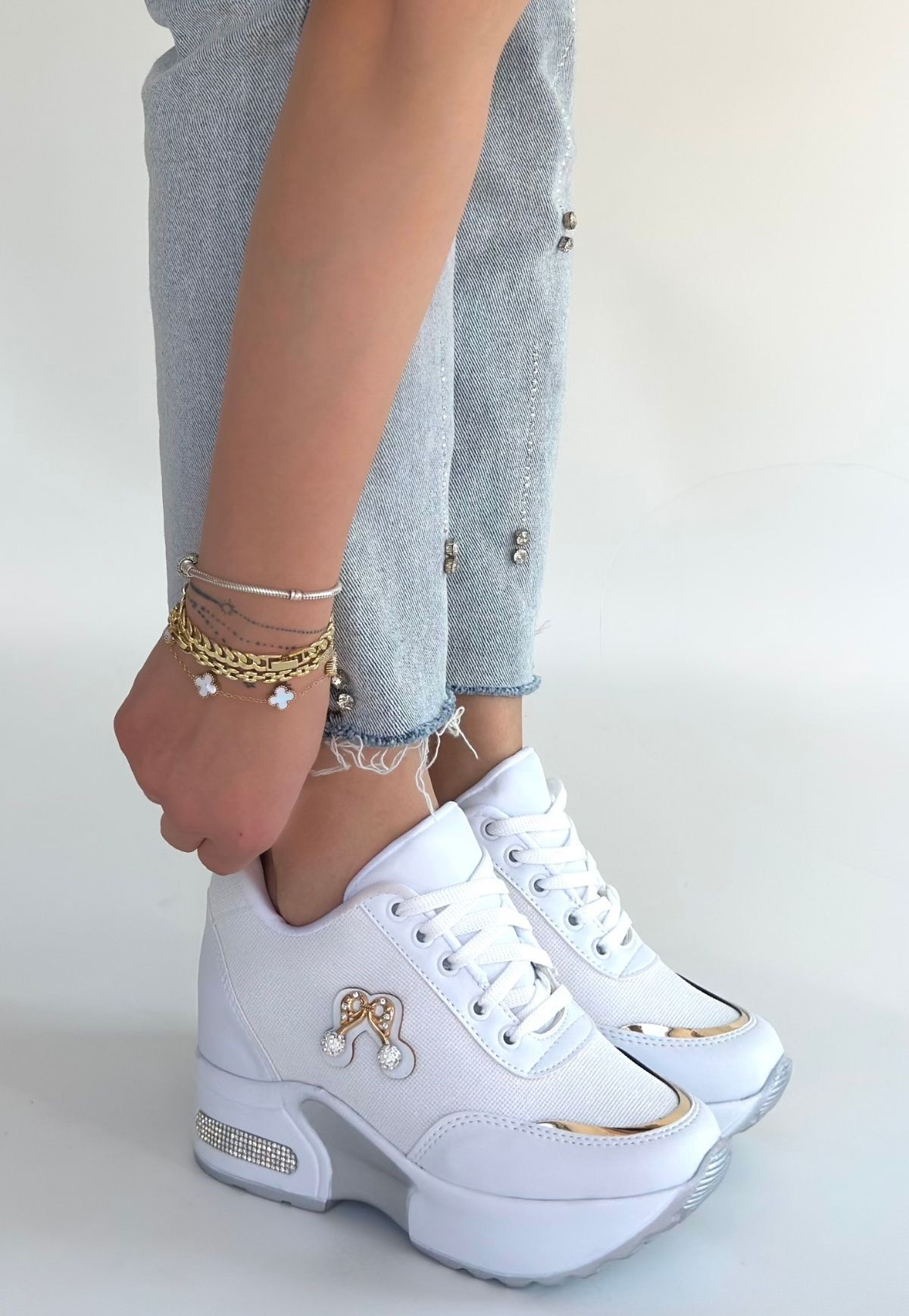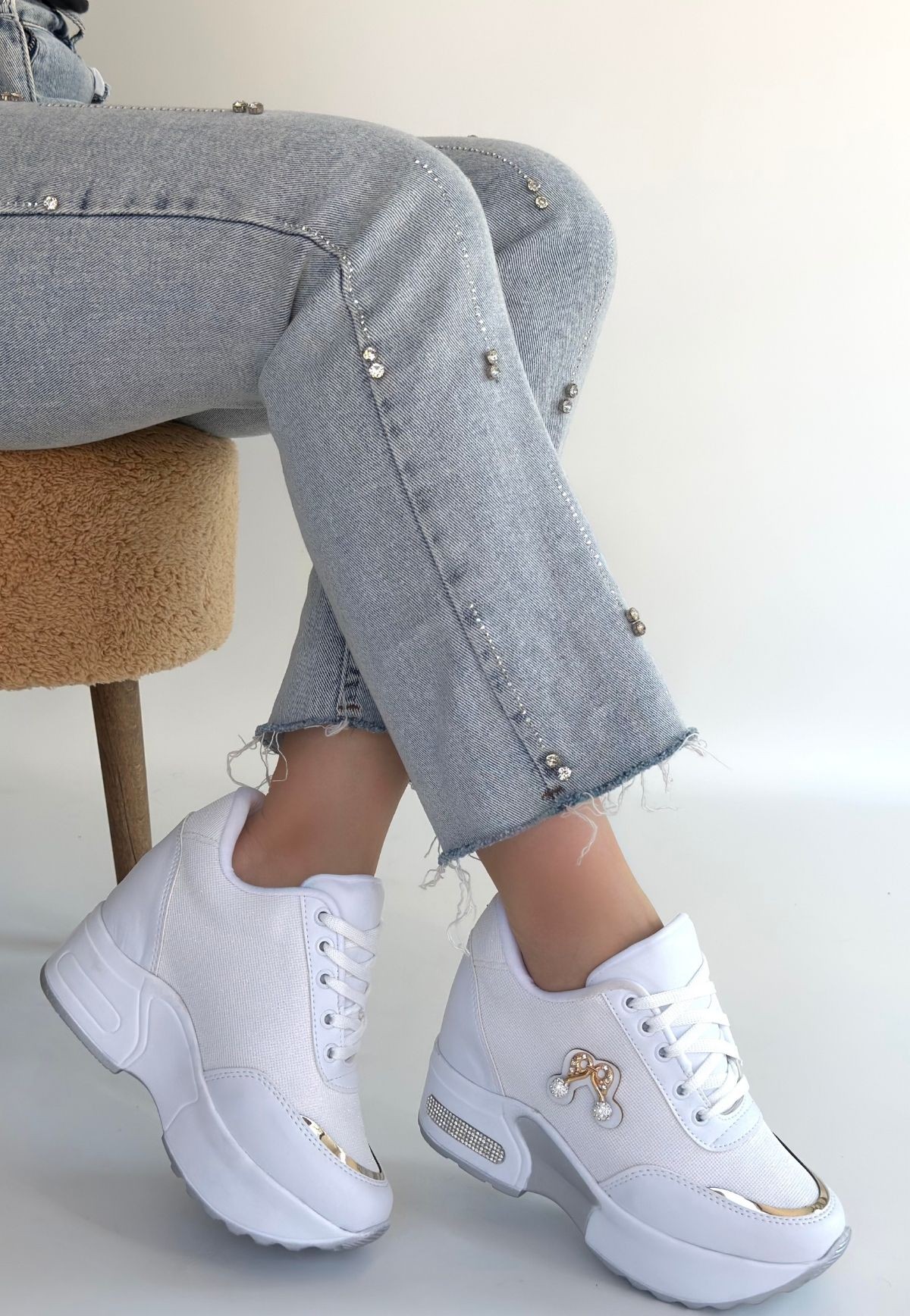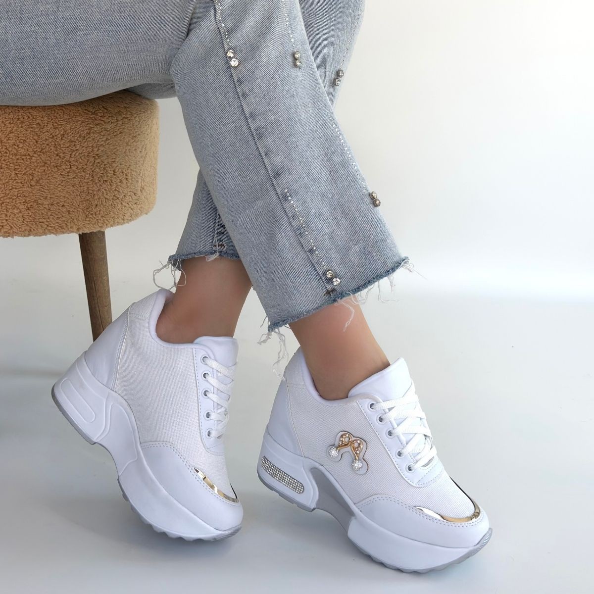 • Wody Beyaz Cilt Simli Bağcıklı Spor Ayakkabı