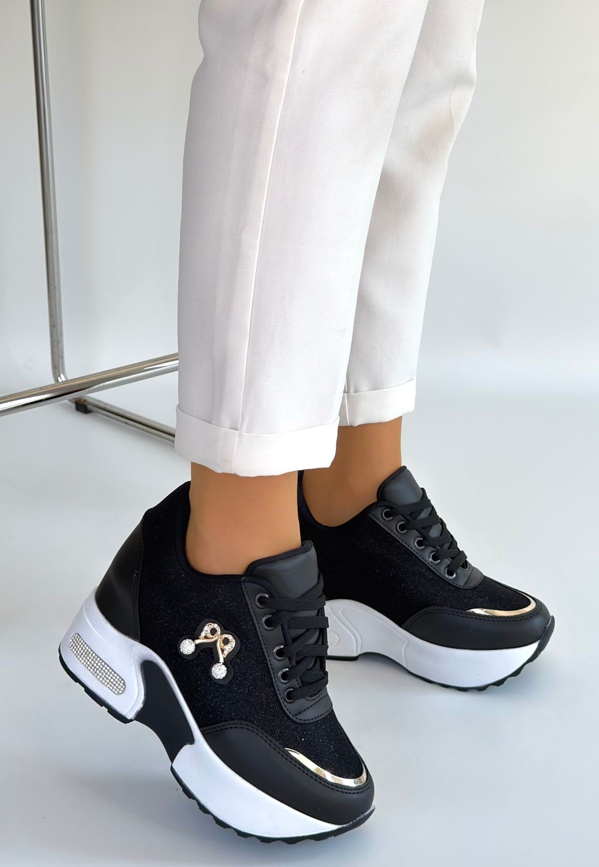 • Wody Siyah Cilt Simli Bağcıklı Spor Ayakkabı