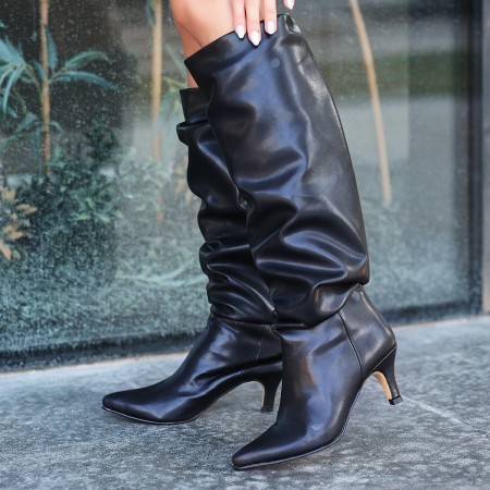 Detay : Topuklu Diz Altı Körüklü Çizme