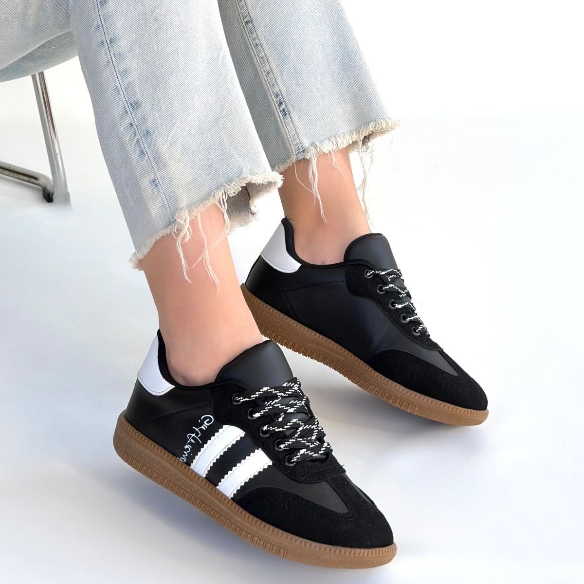 • Zerti Siyah Cilt Bağcıklı Spor Ayakkabı
